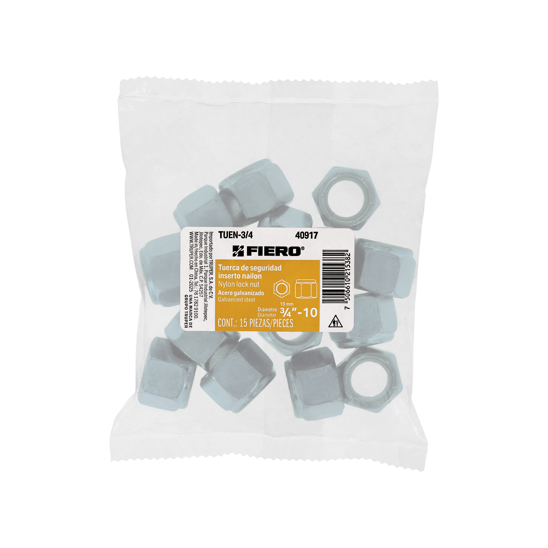 Bolsa con 15 tuercas de seguridad, 3/4′ , FIERO