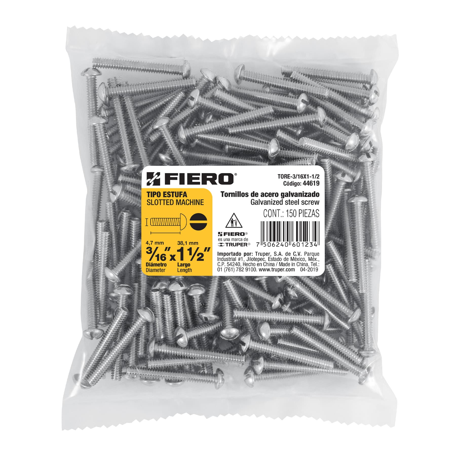 Bolsa con 150 tornillos 3/16′ x 1-1/2′ tipo estufa, FIERO
