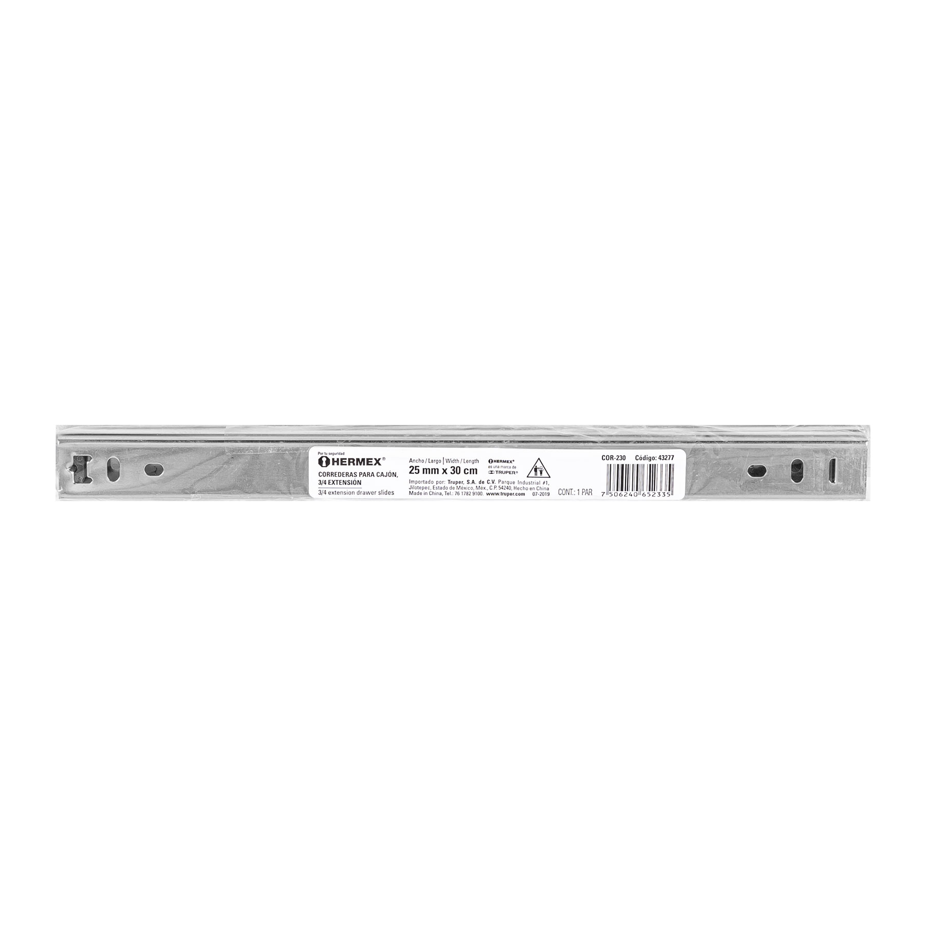 Bolsa con 2 correderas extensión 30 cm p/cajón, ancho 2.5 cm