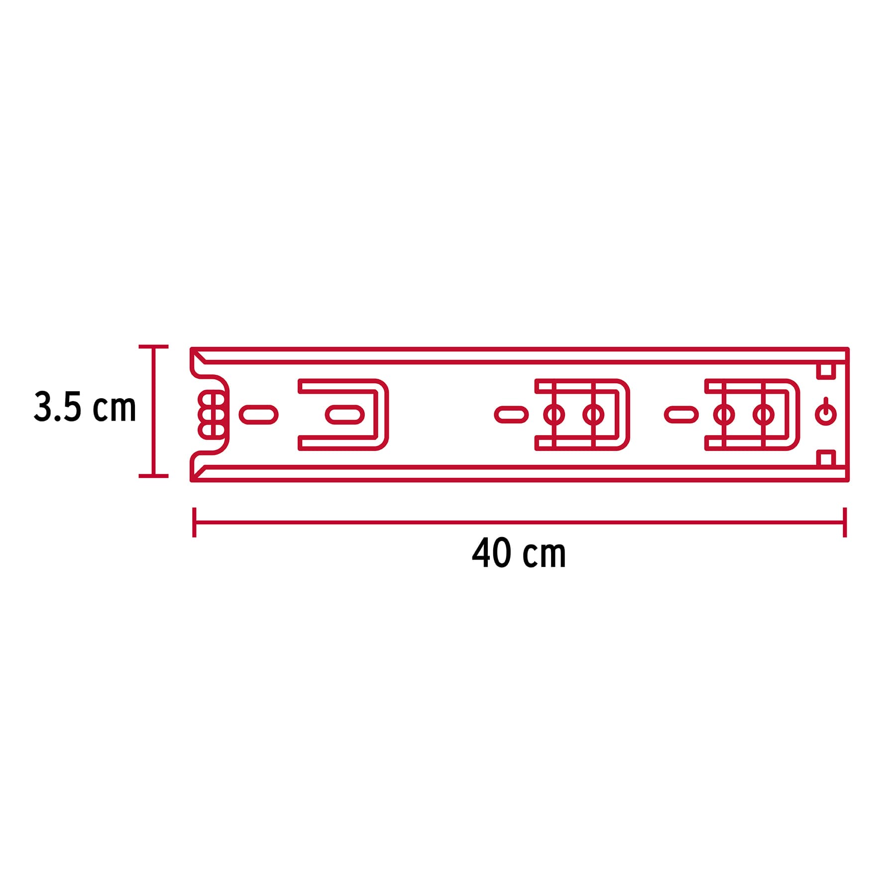 Bolsa con 2 correderas extensión 40 cm p/cajón, ancho 3.5 cm