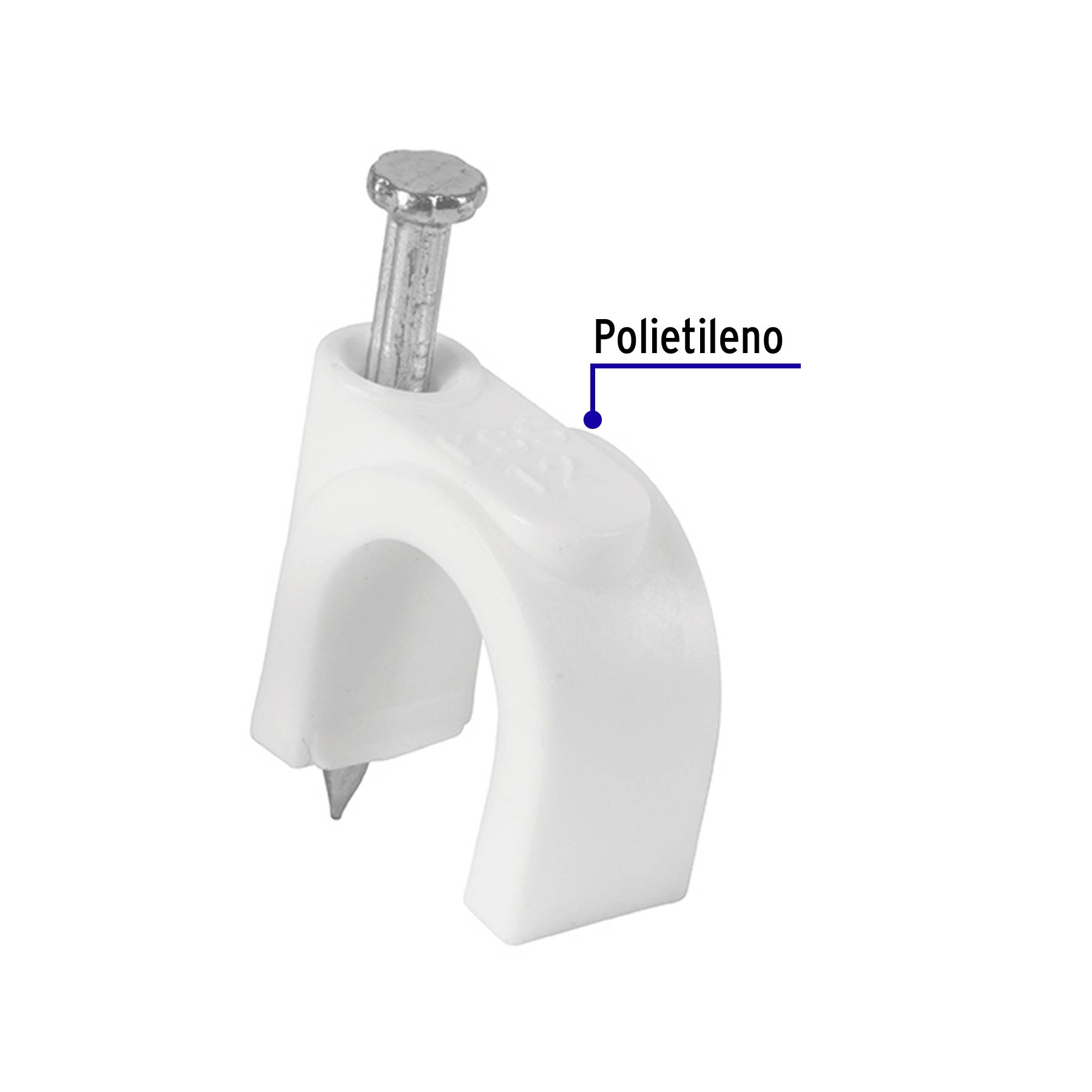 Bolsa con 20 grapas blancas de 10 mm para cable redondo