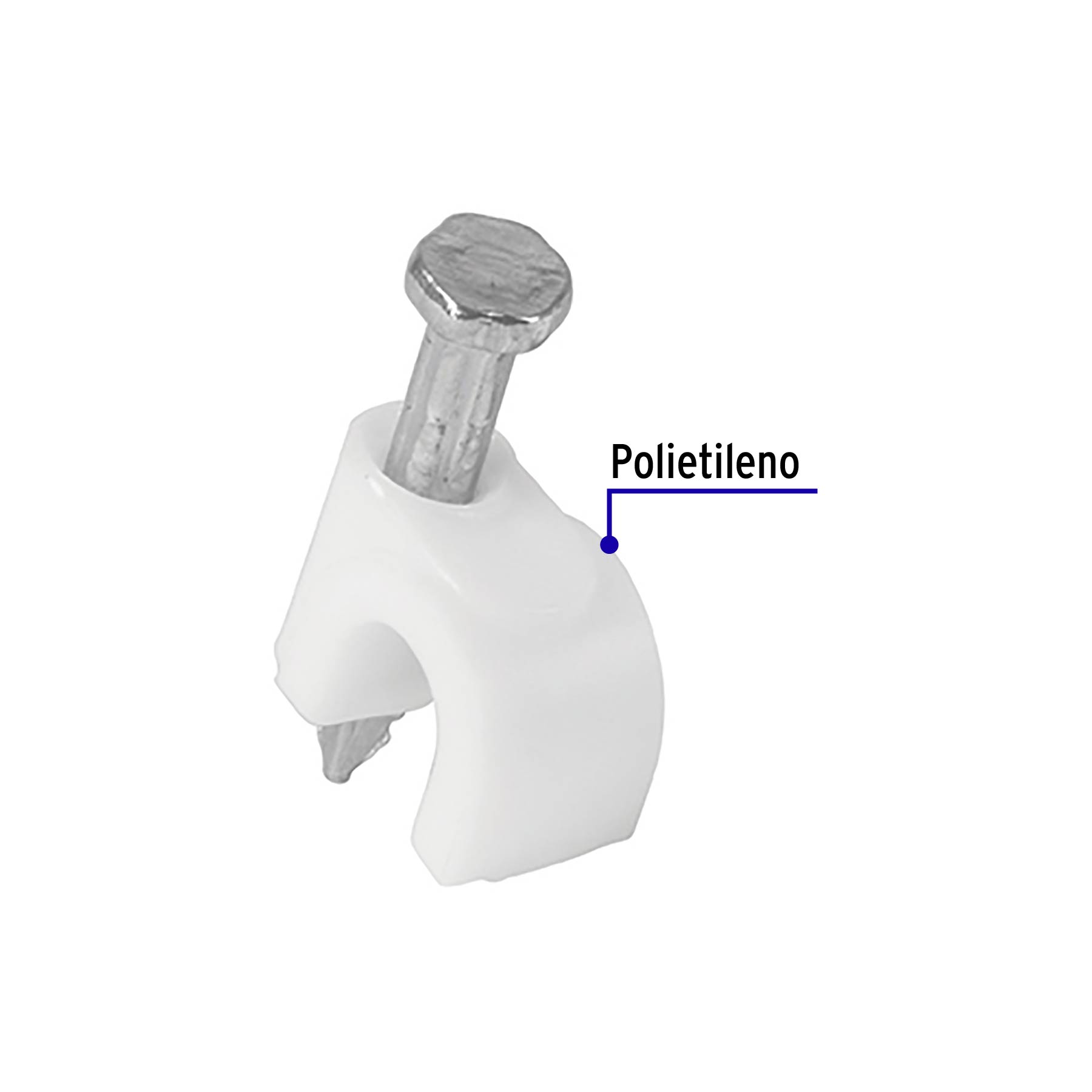 Bolsa con 20 grapas blancas de 6 mm para cable redondo