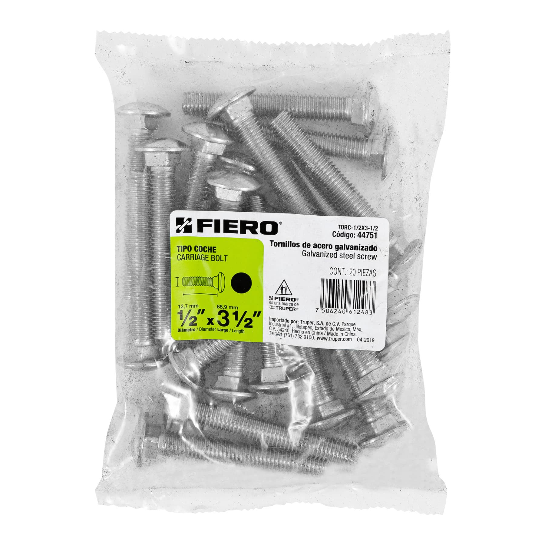 Bolsa con 20 tornillos 1/2′ x 3-1/2′ tipo coche, FIERO