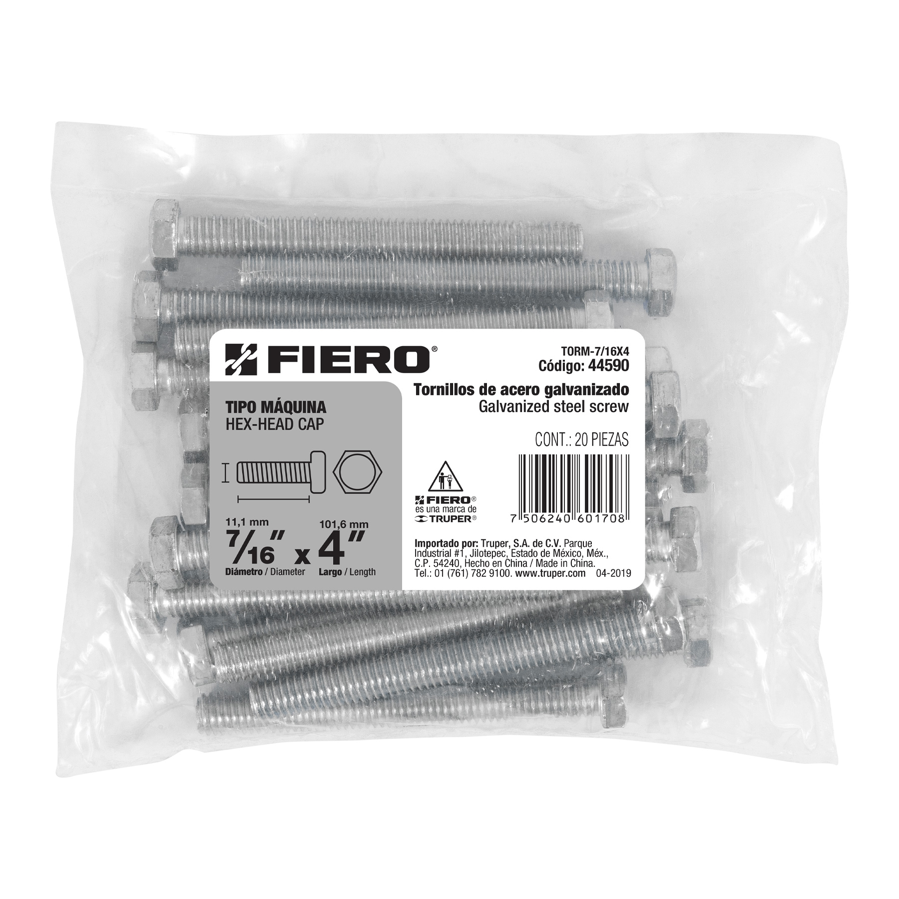 Bolsa con 20 tornillos 7/16′ x 4′ tipo máquina, FIERO