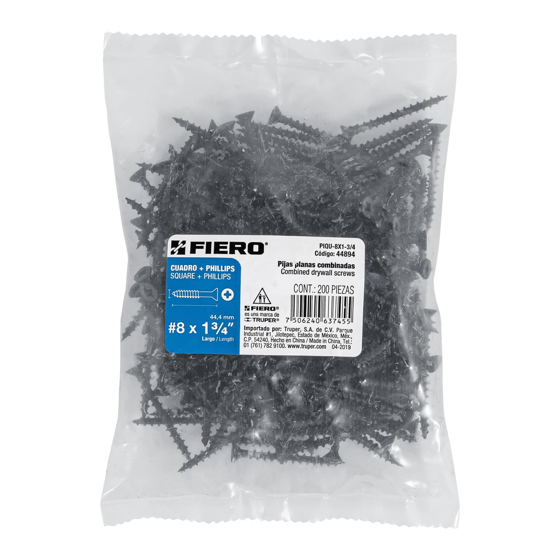 Bolsa con 200 pijas #8 x 1-3/4′ combinadas (cuadro+Phillips)