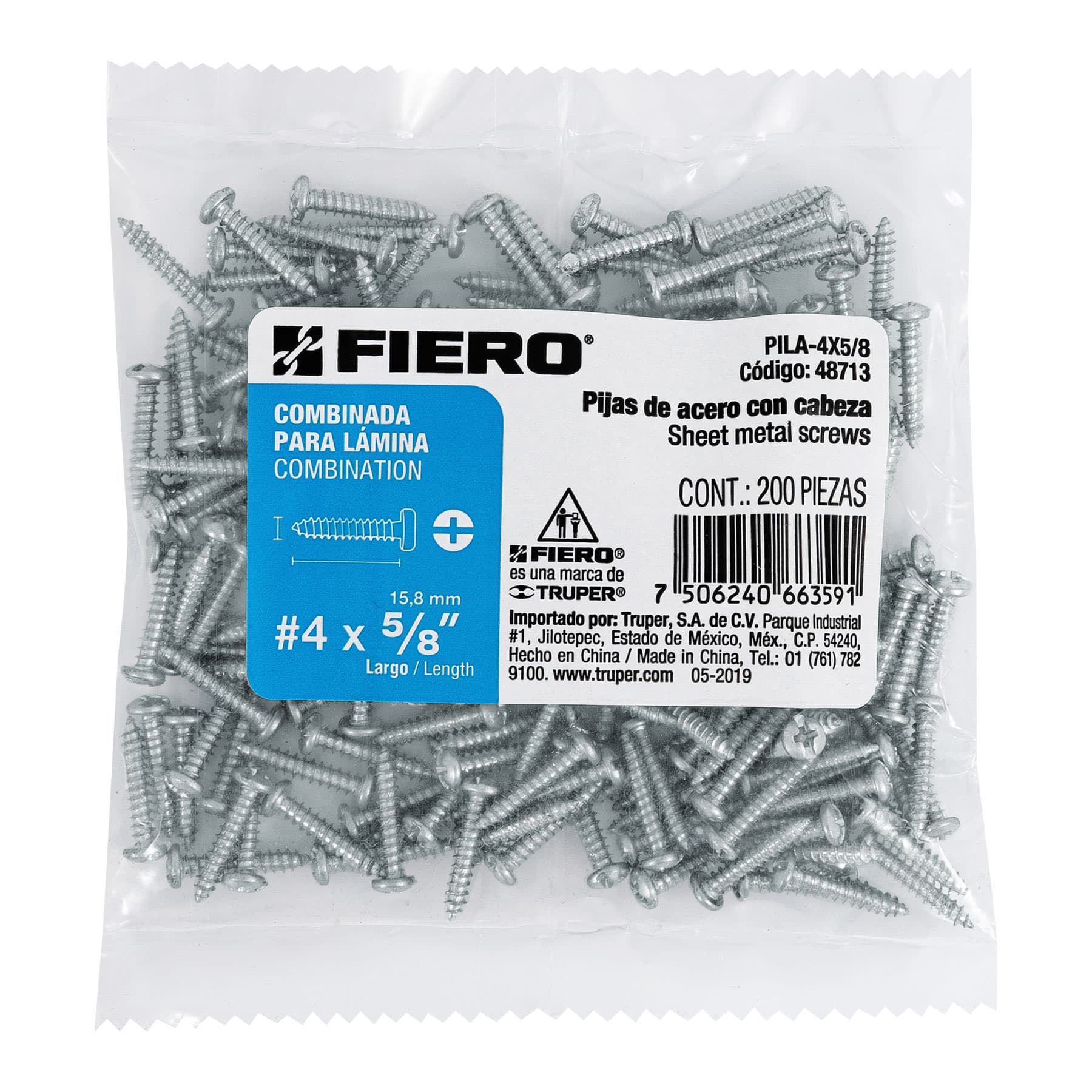 Bolsa con 200 pijas para lámina, #4 x 5/8′, FIERO