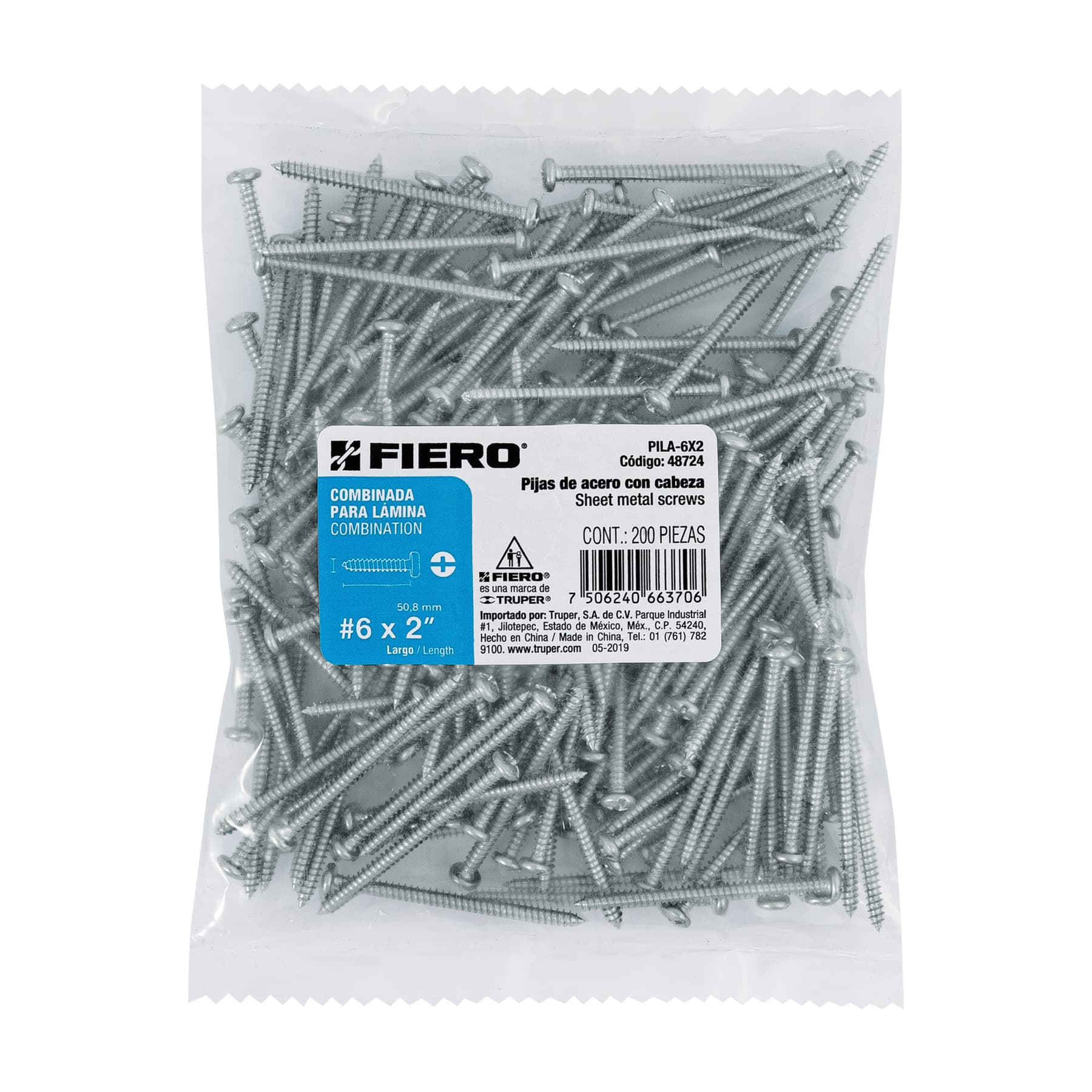 Bolsa con 200 pijas para lámina, #6 x 2′, FIERO