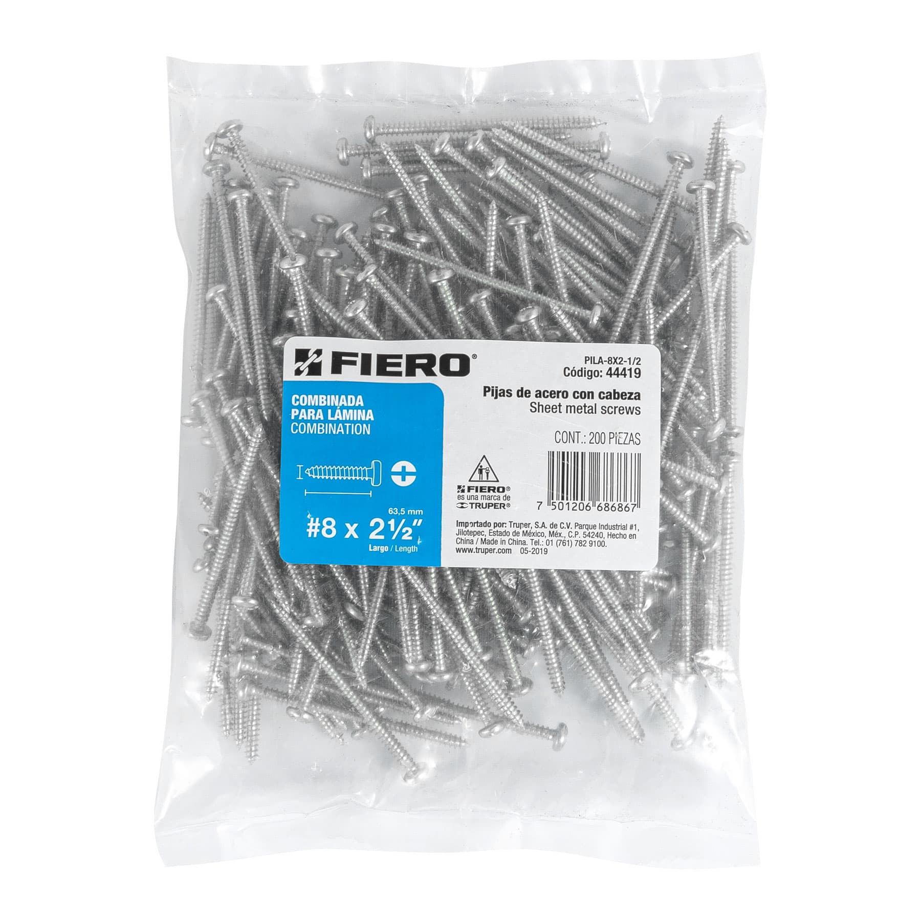 Bolsa con 200 pijas para lámina, #8 x 2-1/2′, FIERO