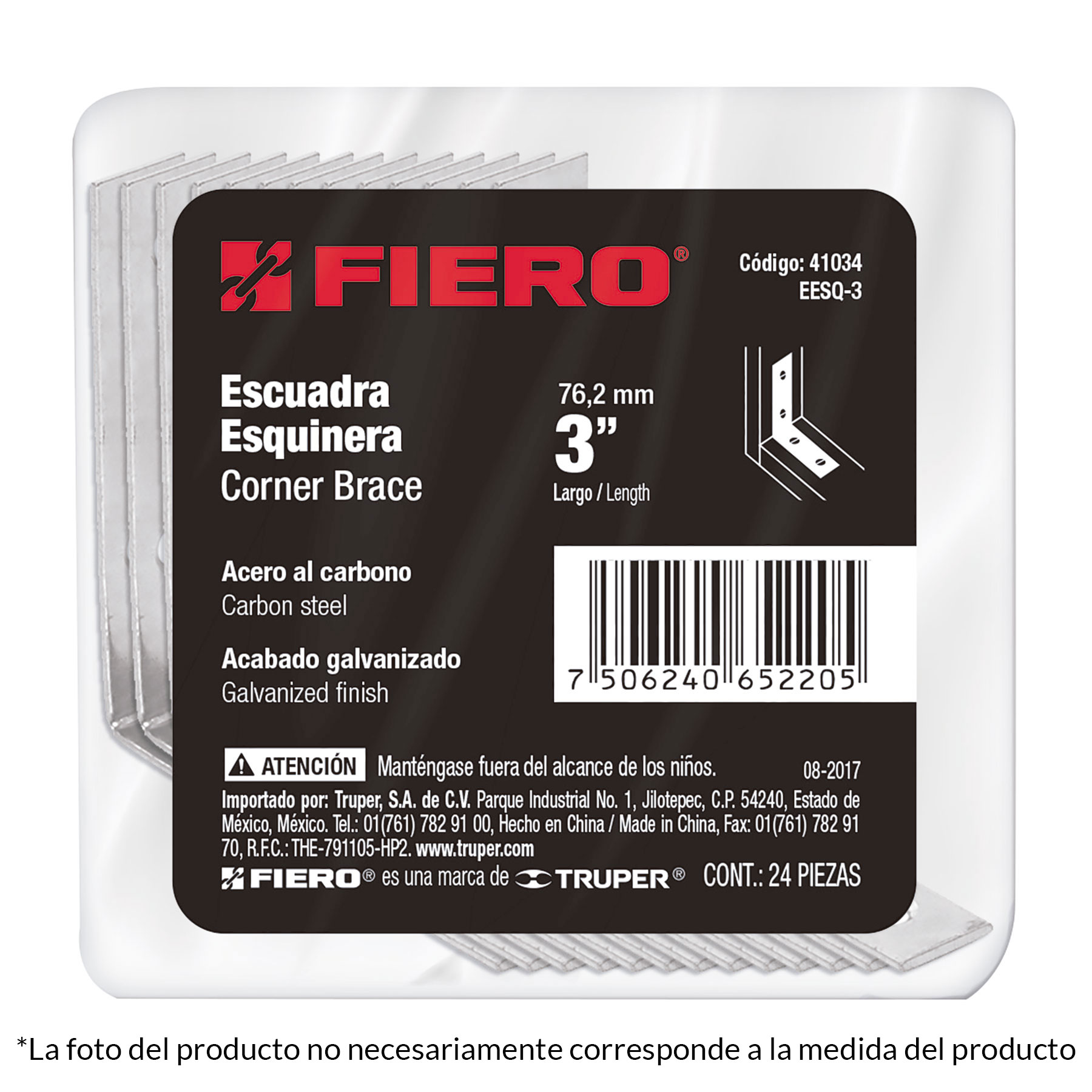 Bolsa con 24 escuadras esquineras 2-1/2′ x 2-1/2′, FIERO