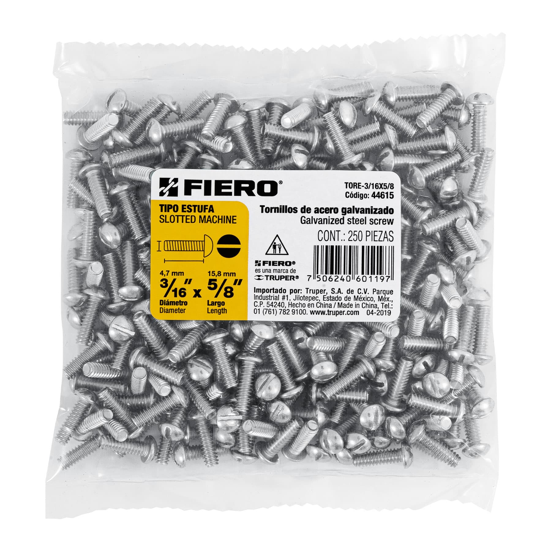 Bolsa con 250 tornillos 3/16′ x 5/8′ tipo estufa, FIERO