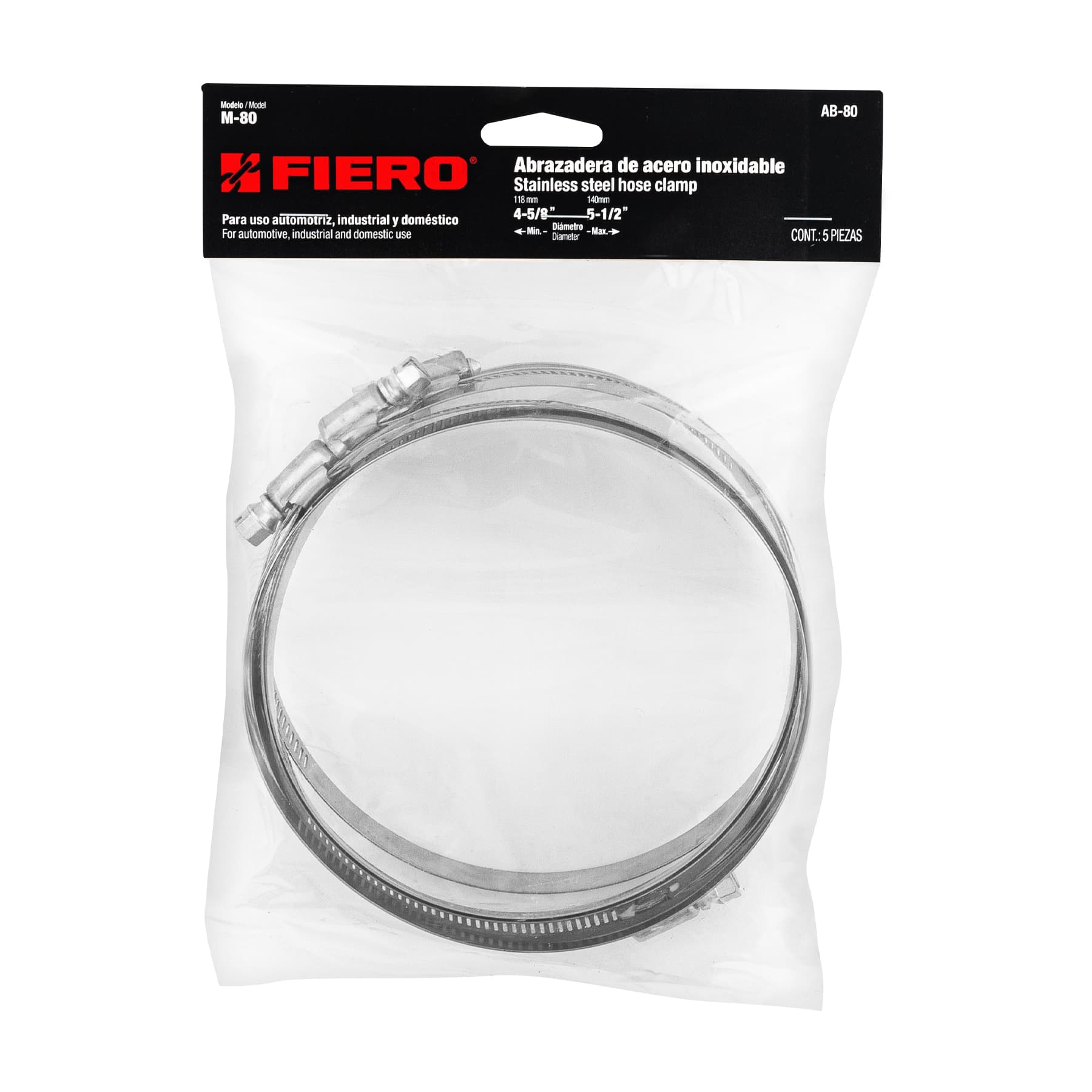 Bolsa c/5 abrazaderas sin fin reforzadas #80, 4-5/8 – 5-1/2′