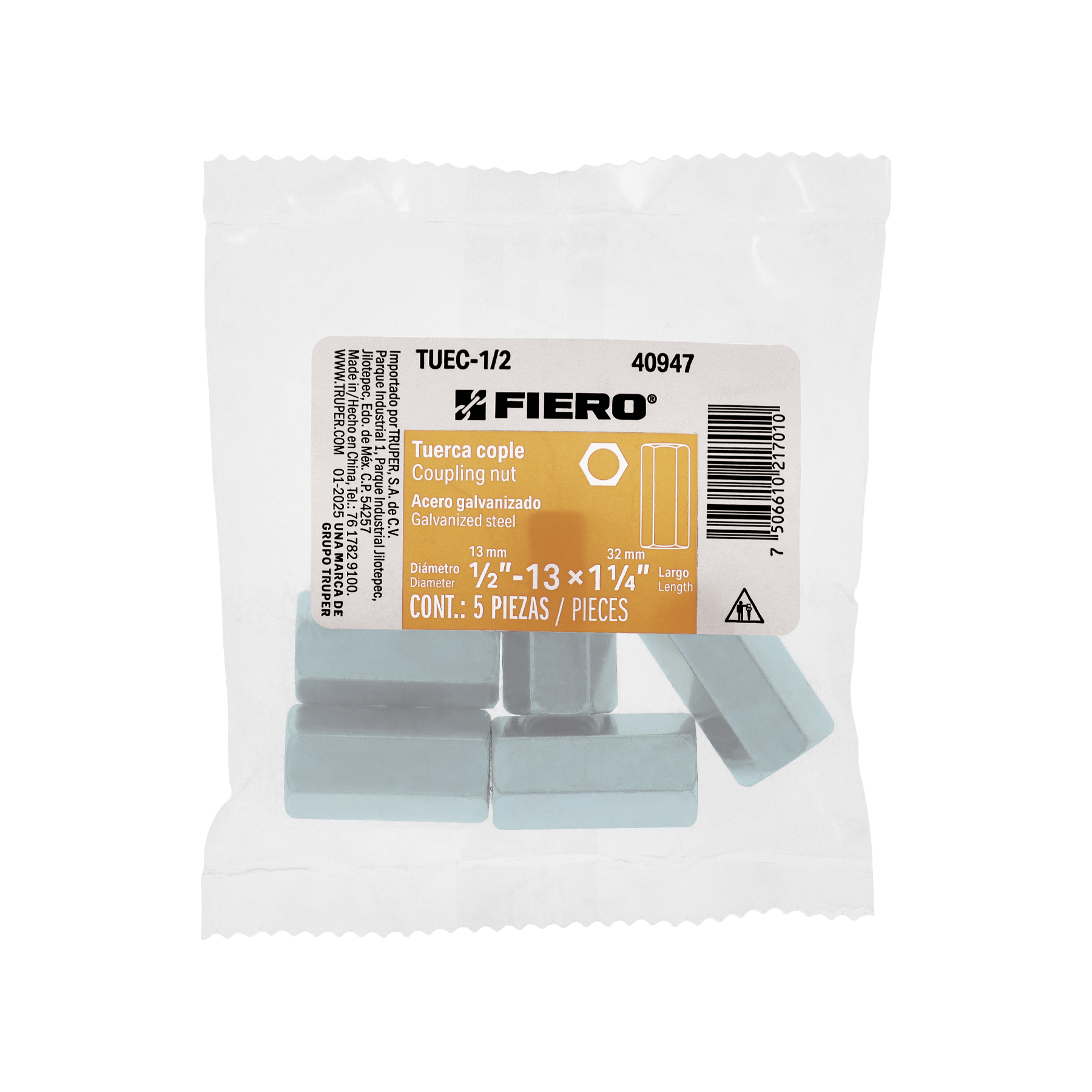 Bolsa con 5 tuercas cople, 1/2′ acero galvanizado , FIERO