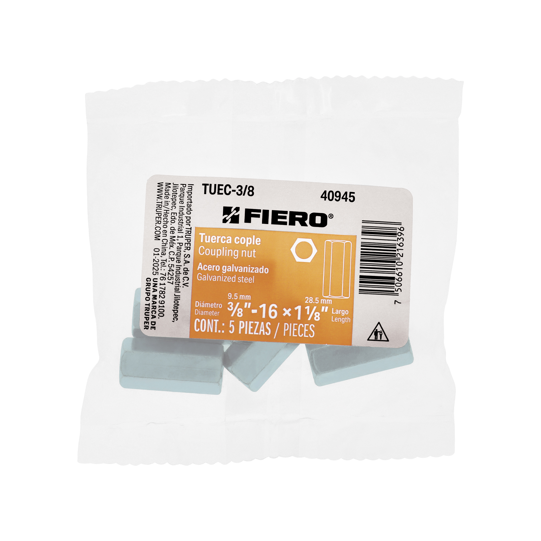 Bolsa con 5 tuercas cople, 3/8′ acero galvanizado , FIERO