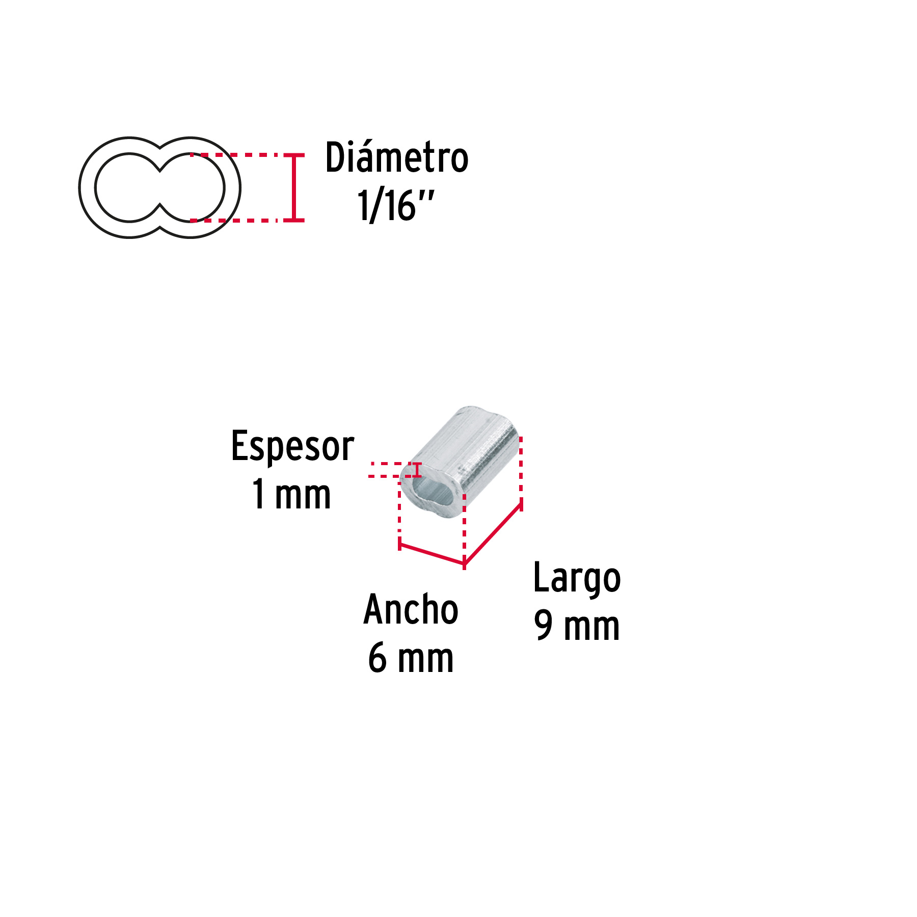 Bolsa con 50 casquillos dobles de aluminio, 1/16′, FIERO
