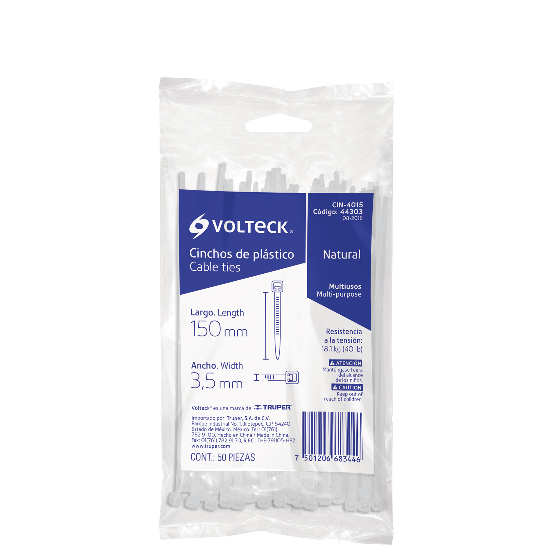 Bolsa con 50 cinchos plásticos 40 lb, 150×3.5 mm, naturales