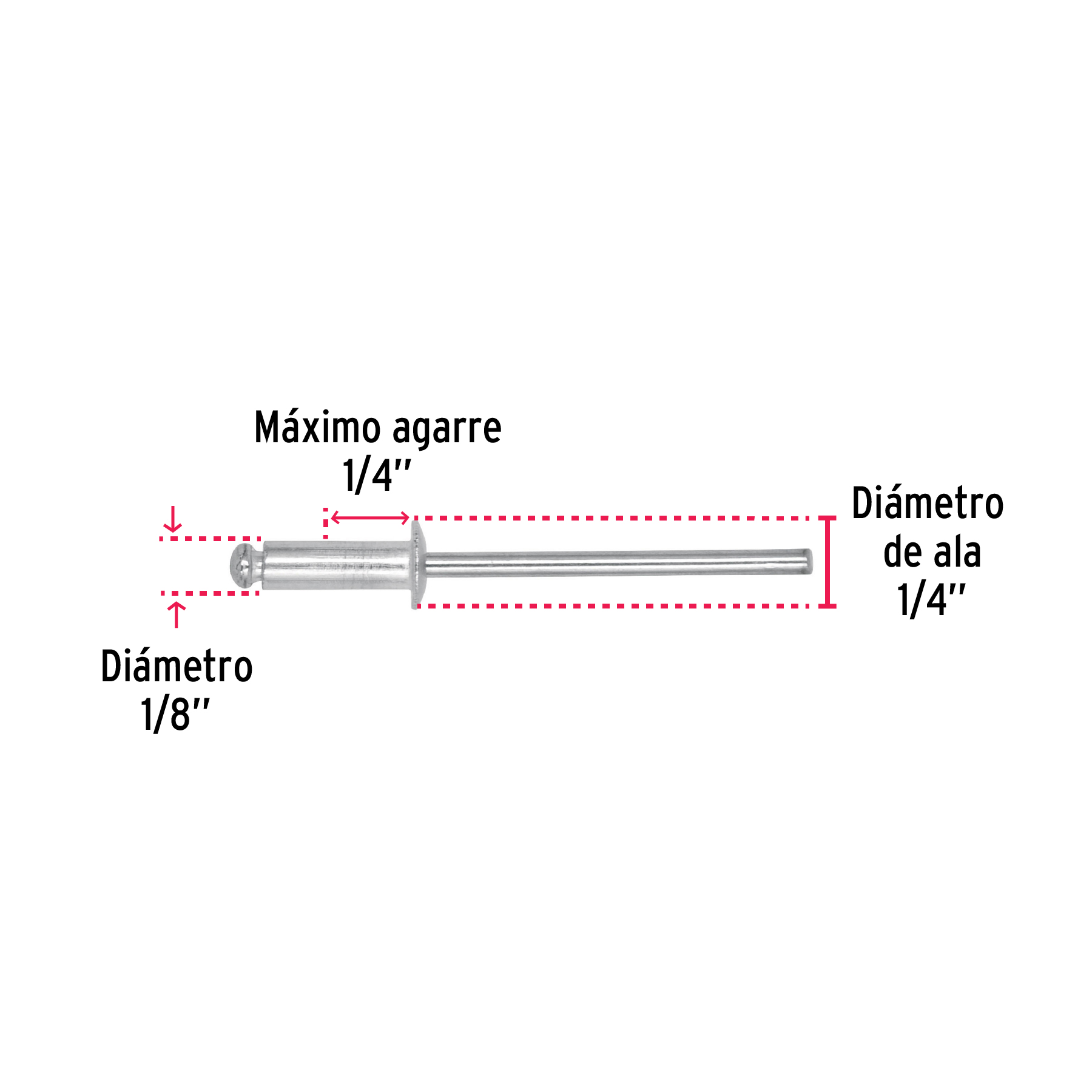 Bolsa con 50 remaches 1/8′ x 1/4′ de aluminio, ala 1/4′