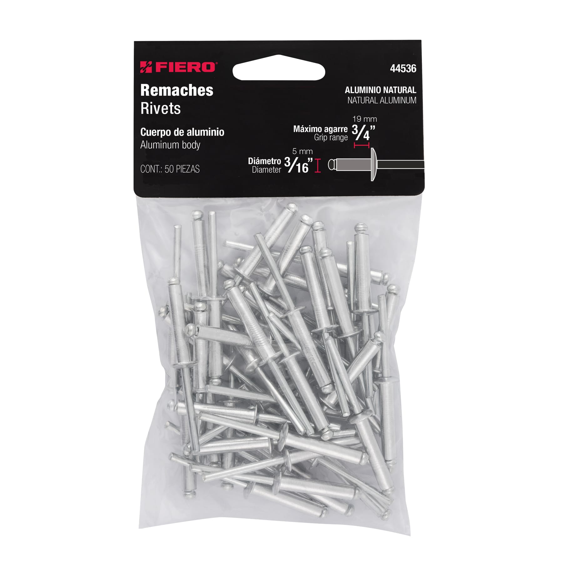 Bolsa con 50 remaches 3/16′ x 3/4′ de aluminio, ala 3/8′