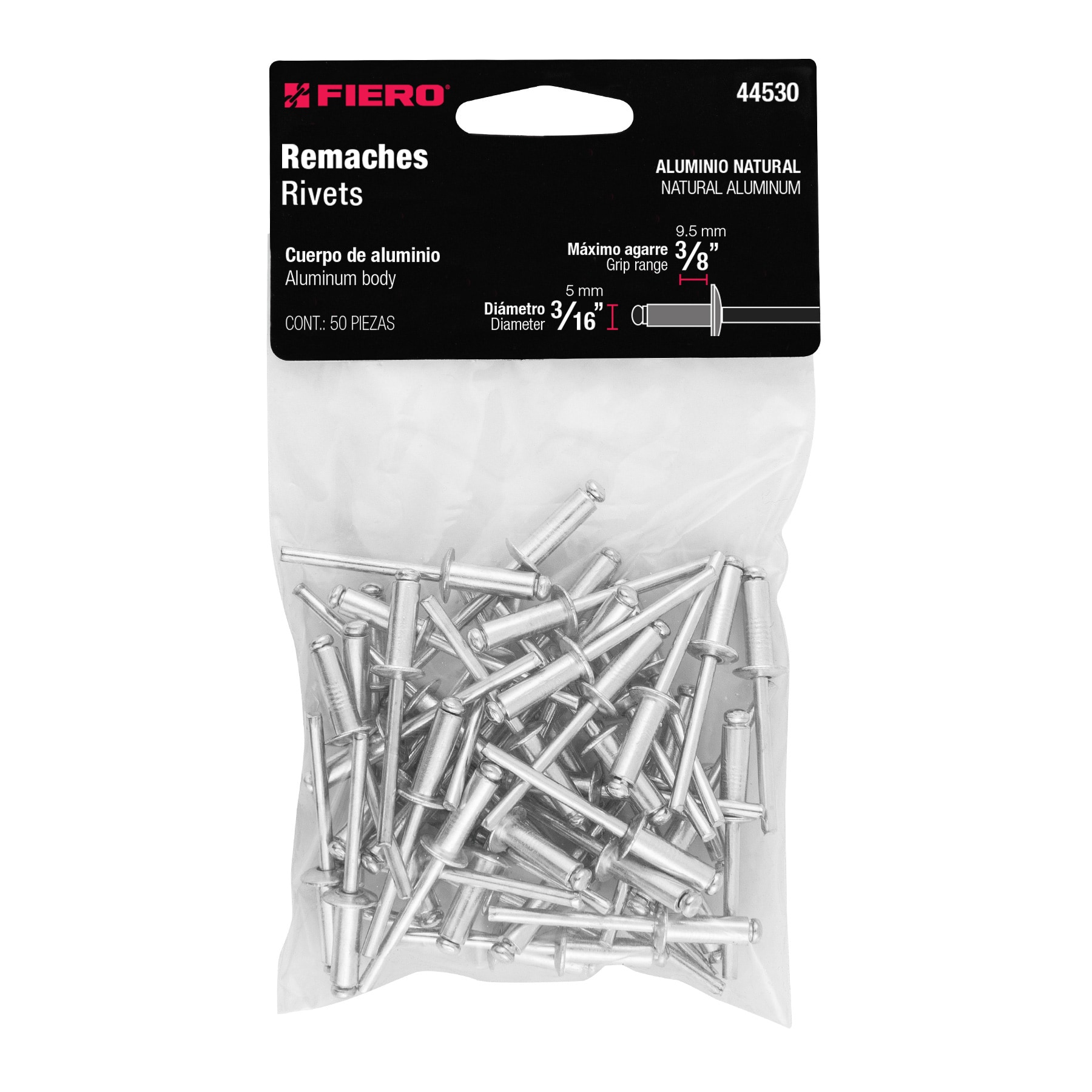 Bolsa con 50 remaches 3/16′ x 3/8′ de aluminio, ala 3/8′