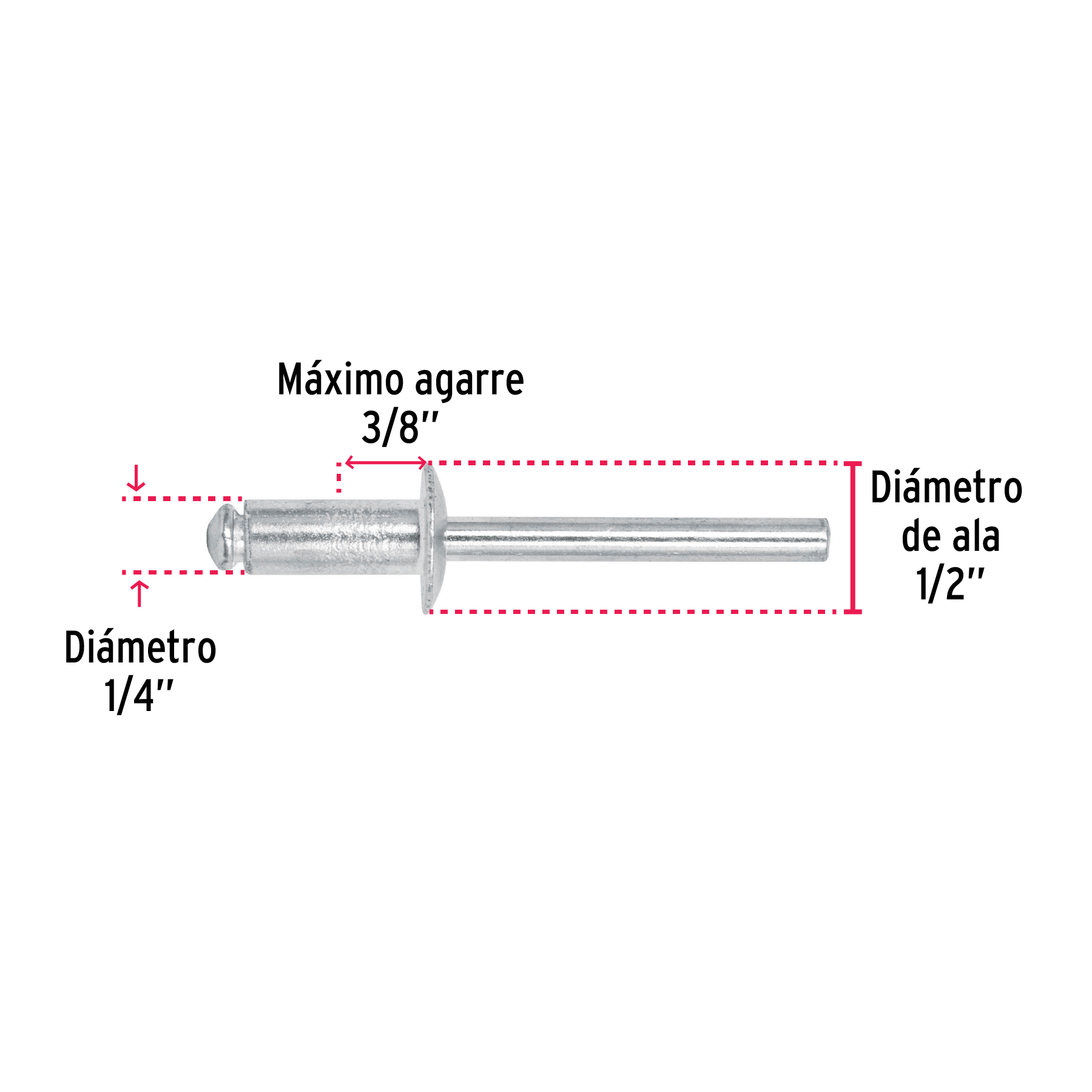 Bolsa con 50 remaches de 1/4′ x 3/8′ de aluminio, ala 1/2′
