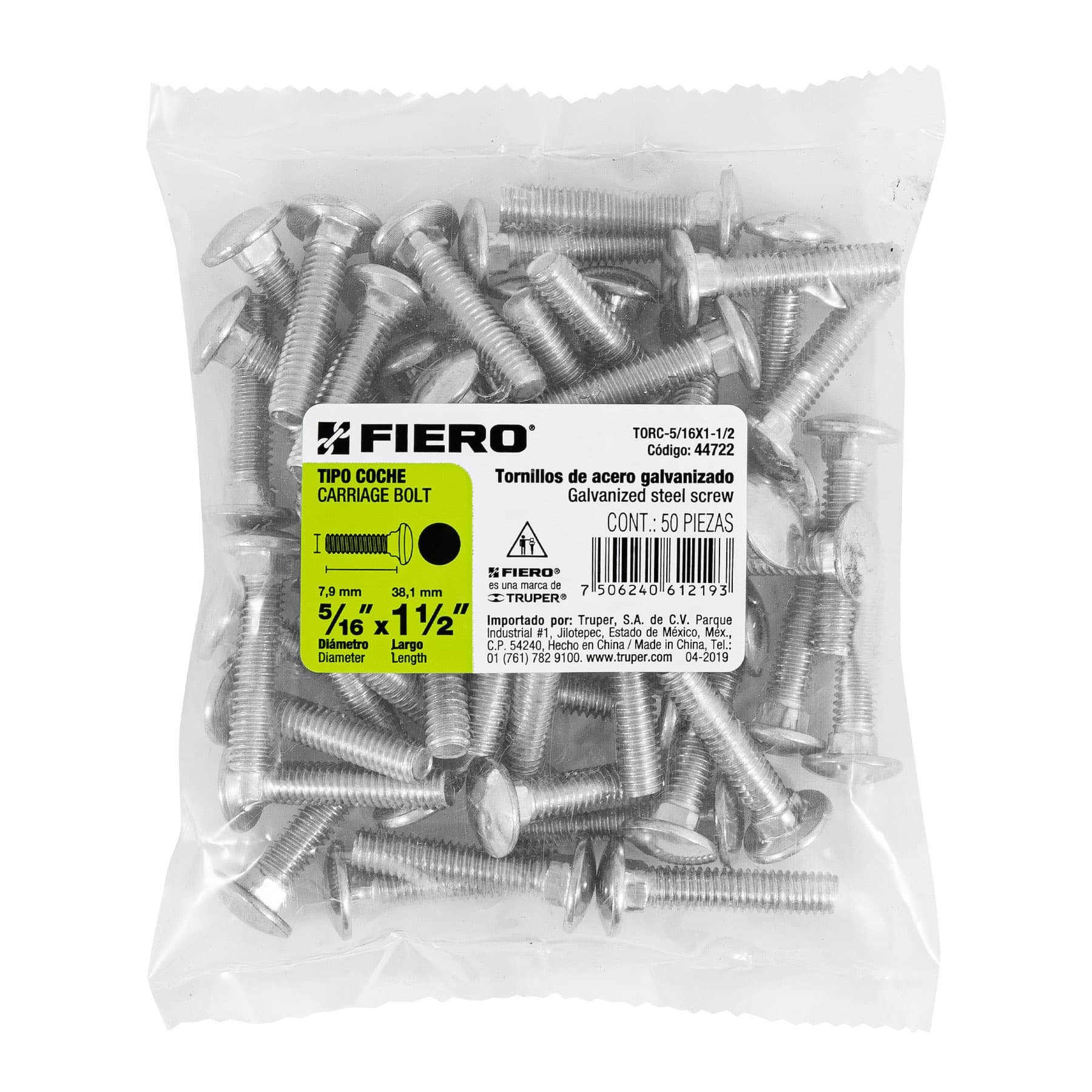 Bolsa con 50 tornillos 5/16′ x 1-1/2′ tipo coche, FIERO