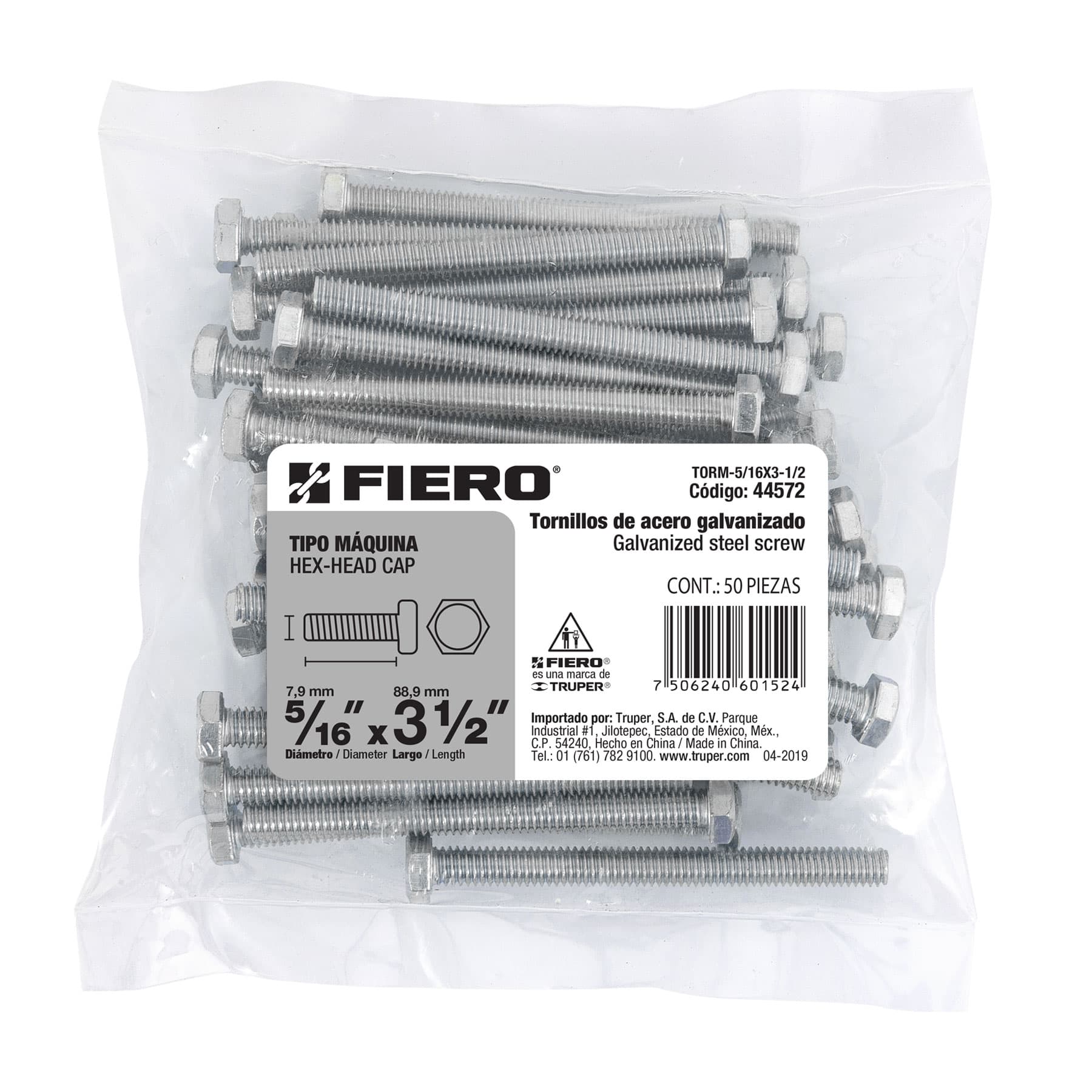 Bolsa con 50 tornillos 5/16′ x 3-1/2′ tipo máquina, FIERO
