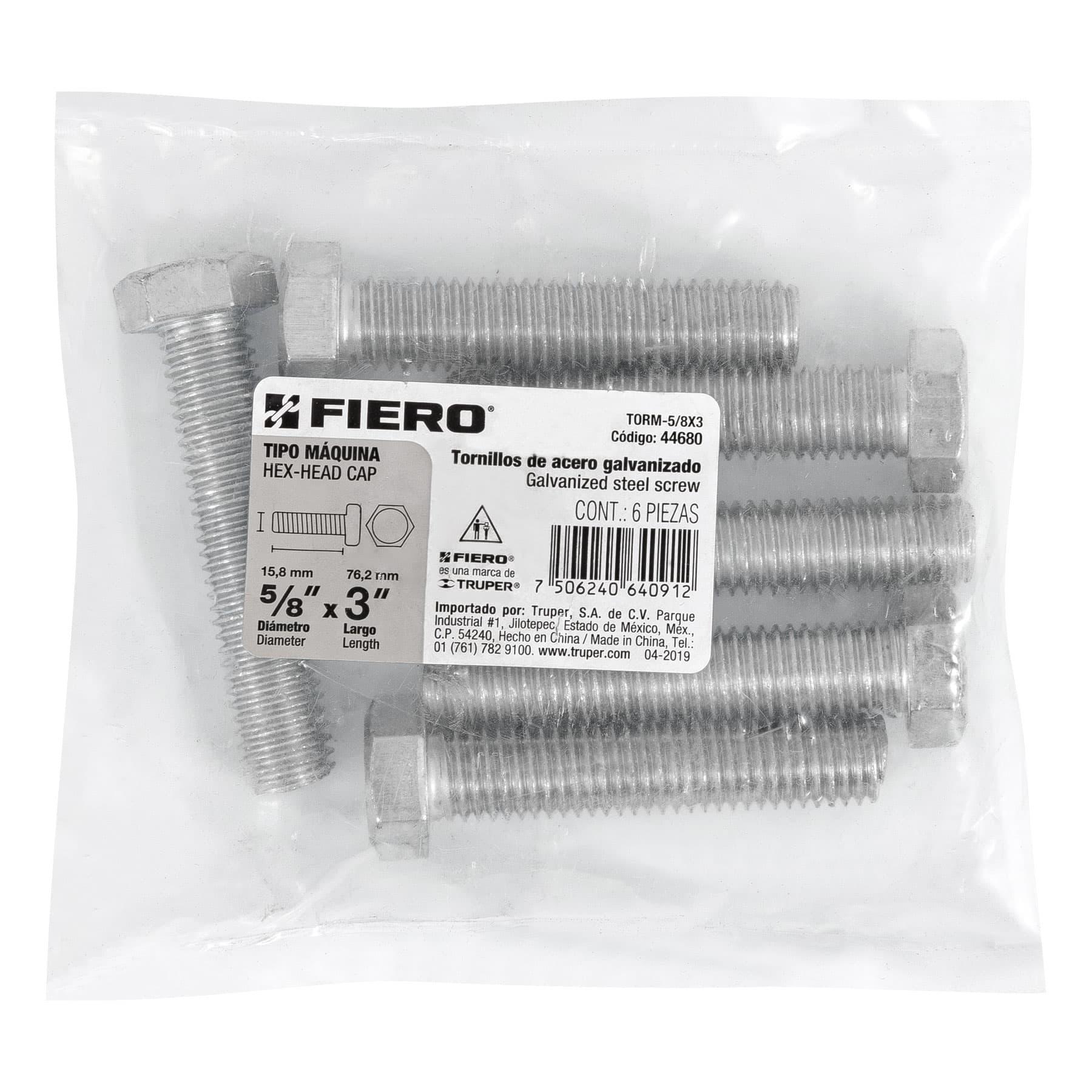 Bolsa con 6 tornillos 5/8′ x 3′ tipo máquina, FIERO