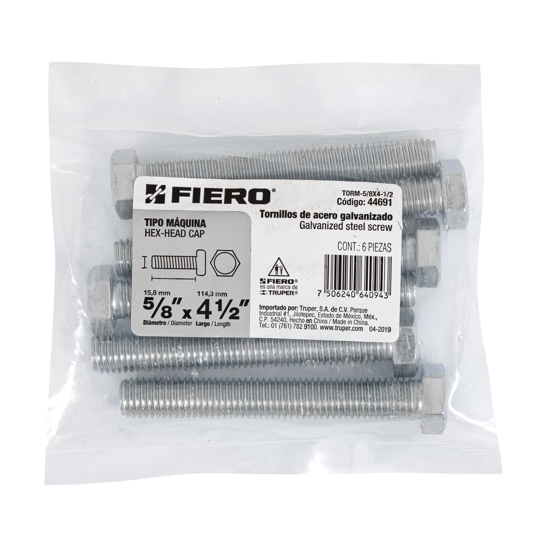 Bolsa con 6 tornillos 5/8′ x 4-1/2′ tipo máquina, FIERO