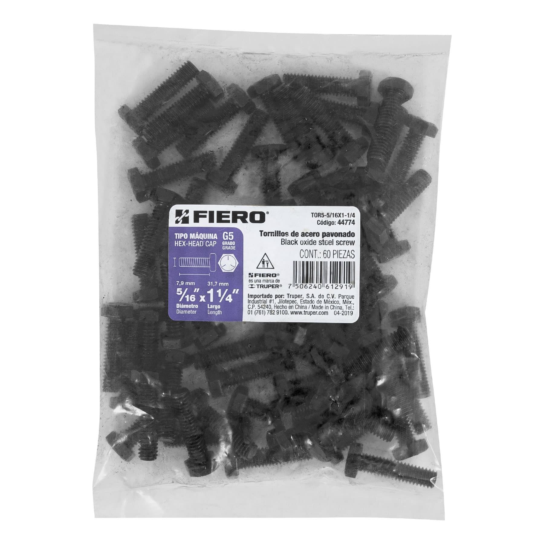 Bolsa con 60 tornillos 5/16′ x 1-1/4′ acero grado 5, FIERO