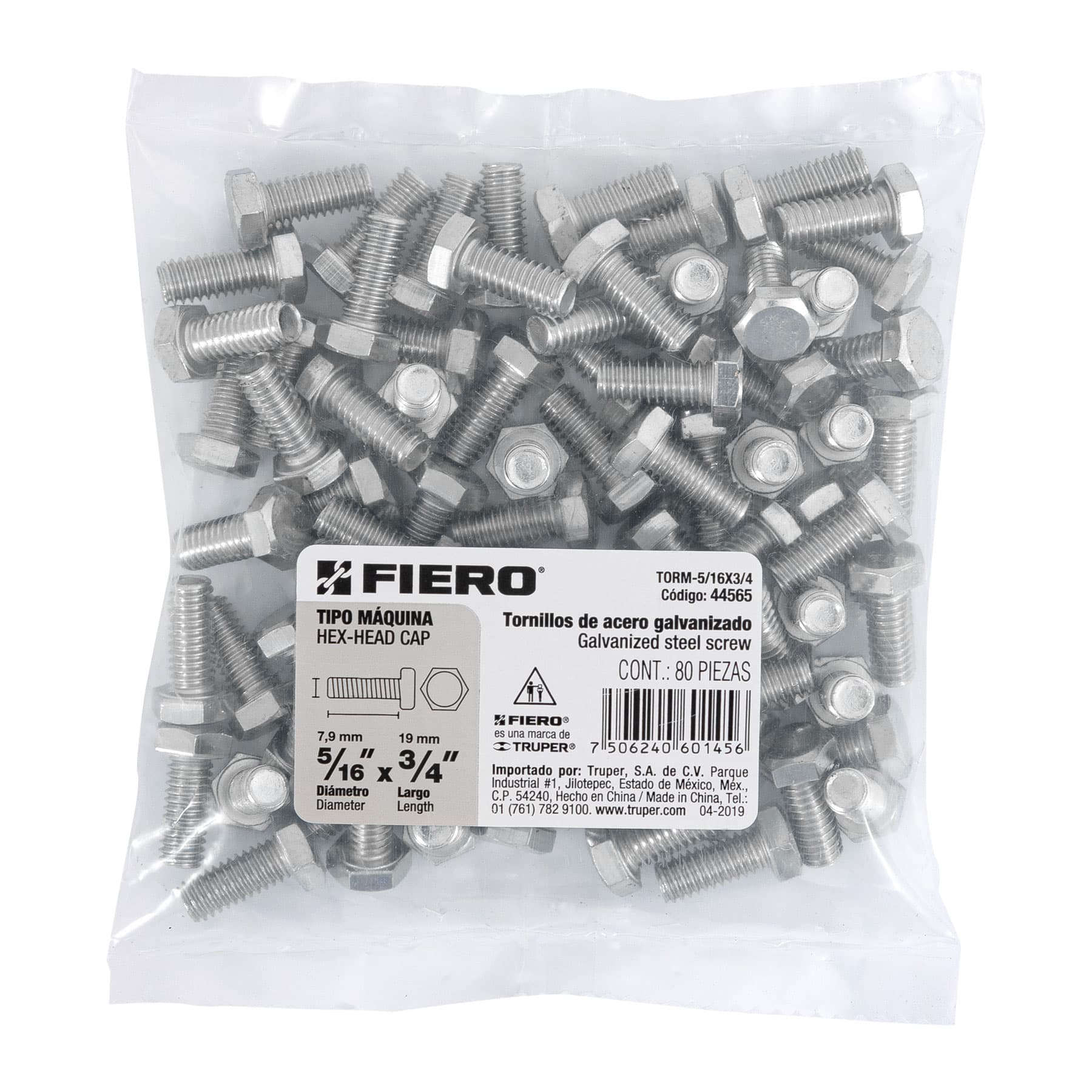 Bolsa con 80 tornillos 5/16′ x 3/4′ tipo máquina, FIERO