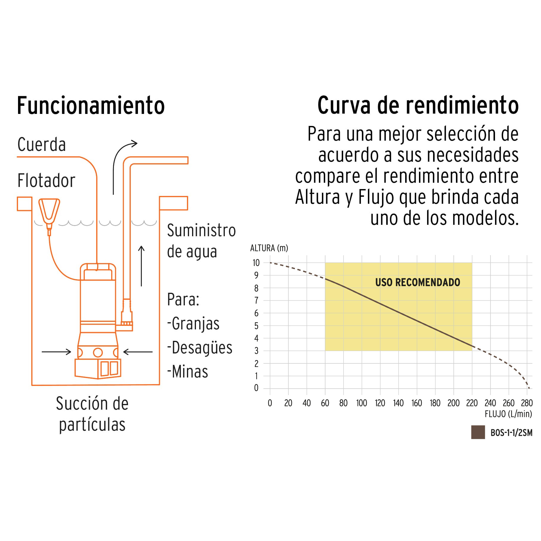 Bomba sumergible acero inoxidable,agua sucia,1-1/2HP, TRUPER