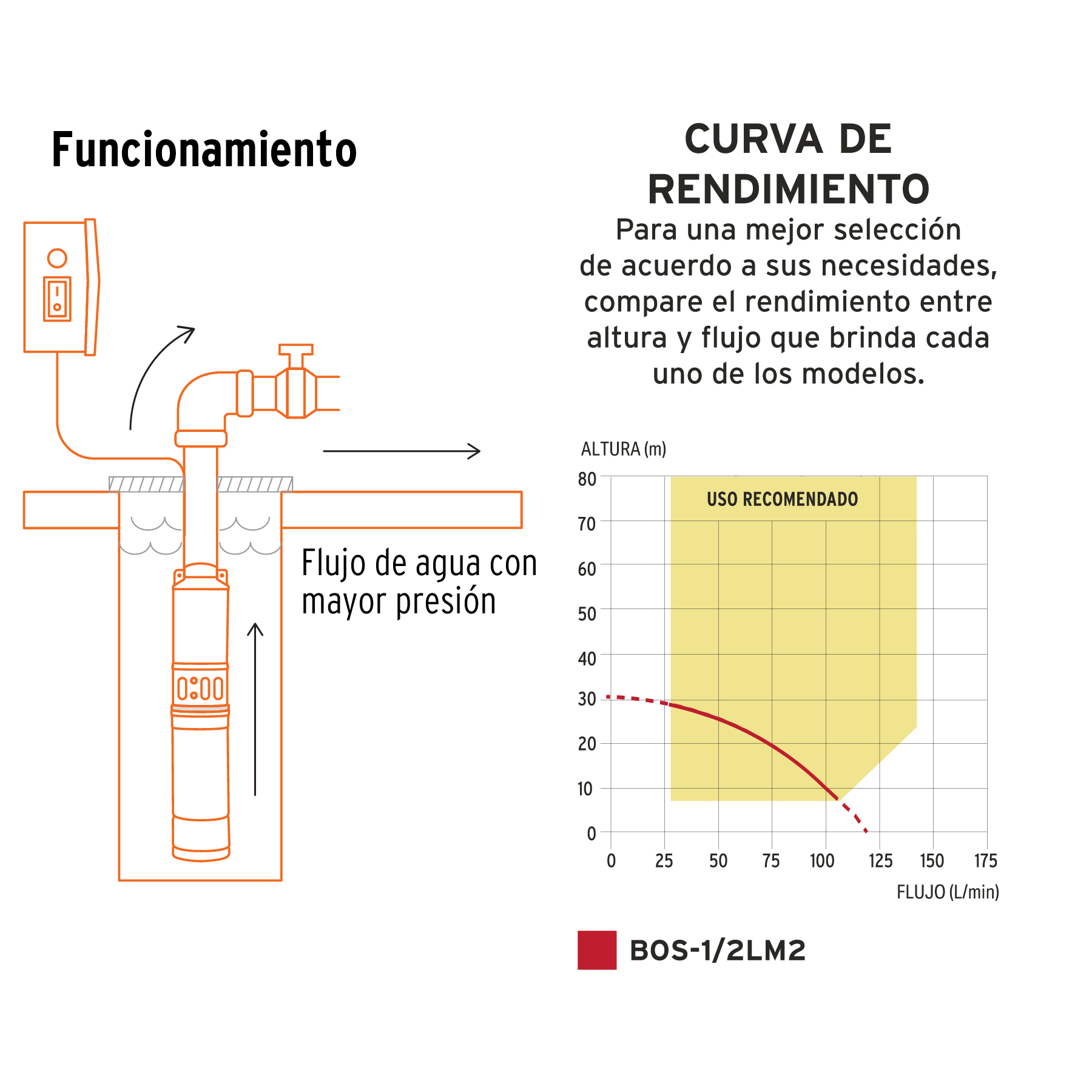 Bomba sumergible tipo bala, 1/2HP, uso agrícola, TRUPER