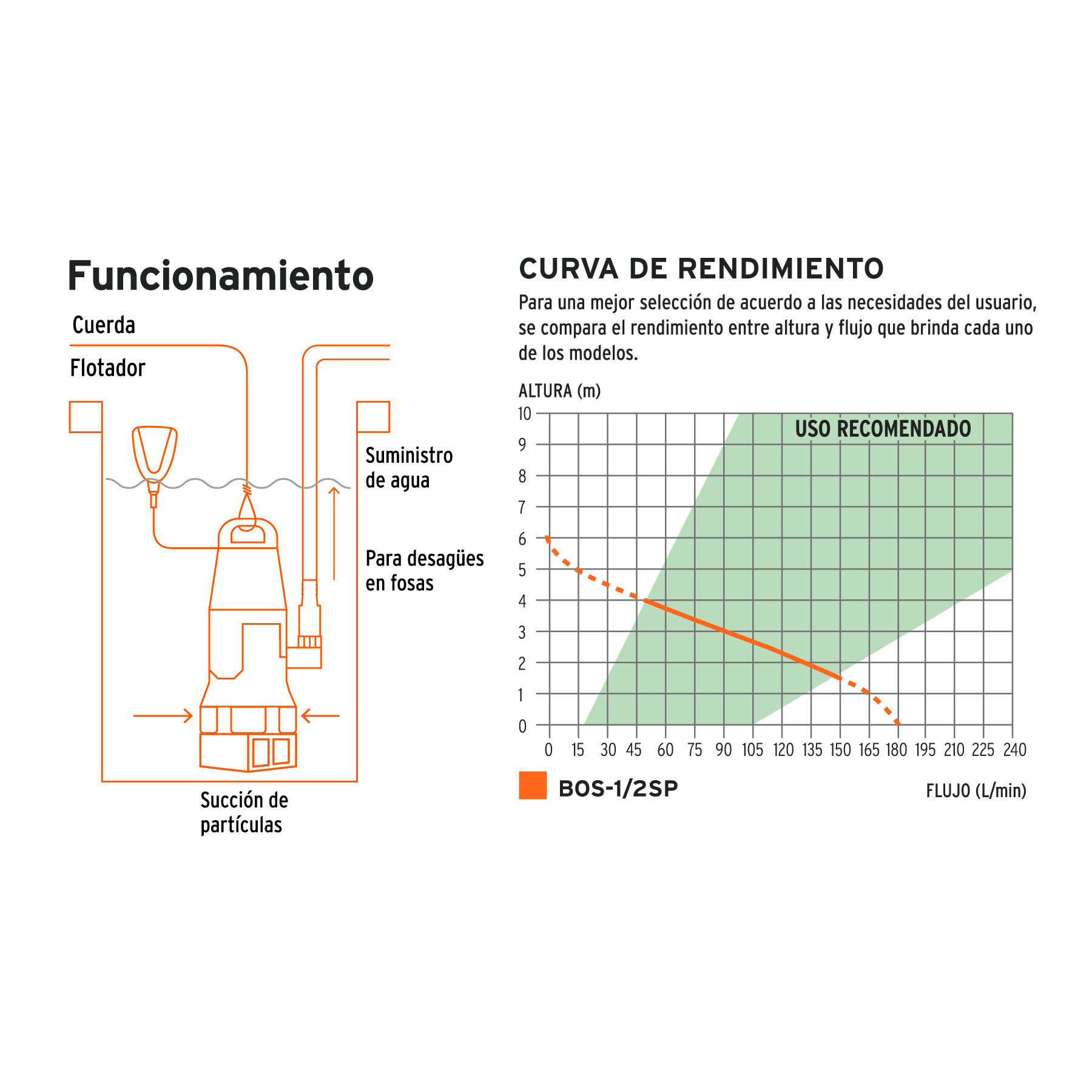 Bomba sumergible plástica, 1/2 HP para agua sucia, TRUPER