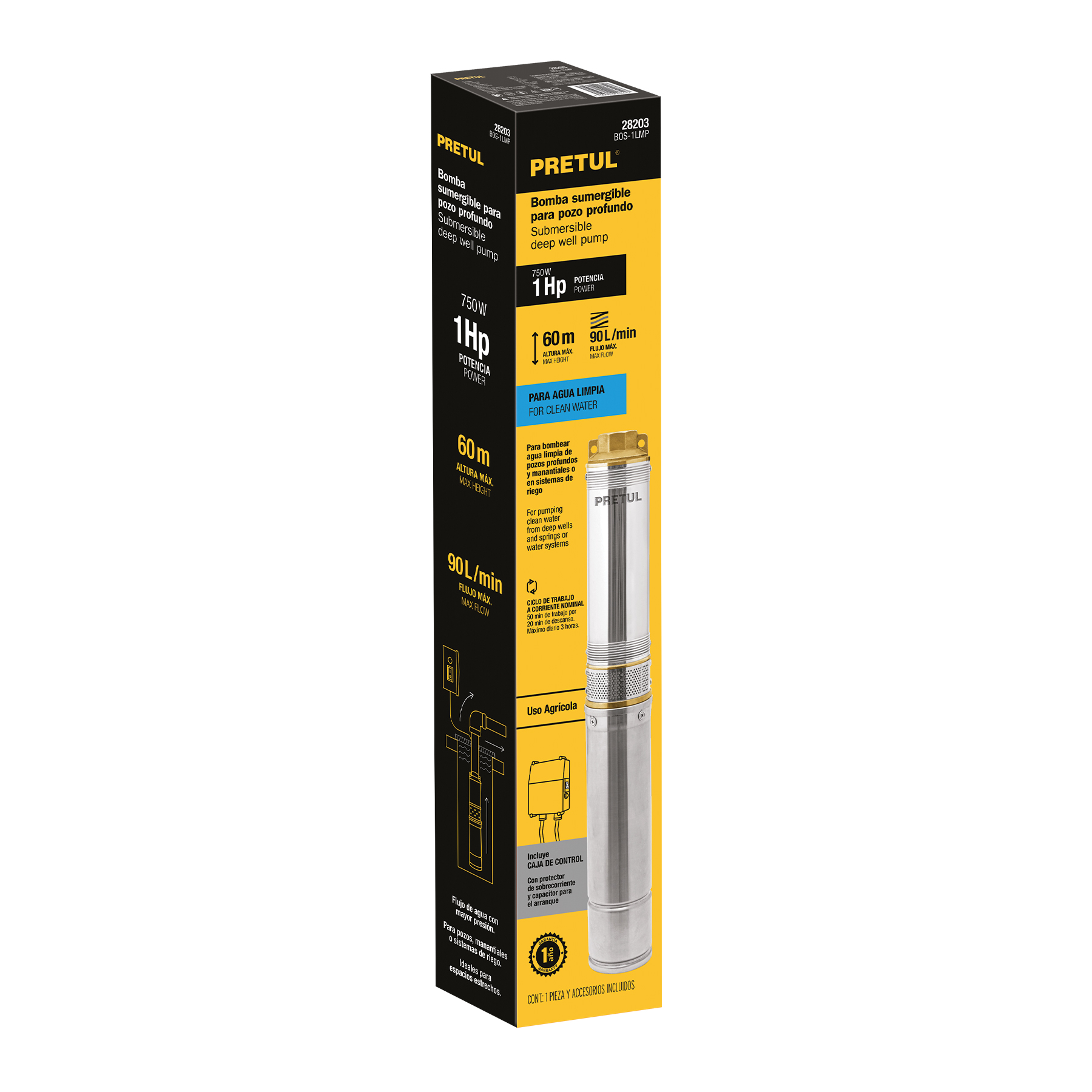 Bomba sumergible tipo bala, 1HP, uso agrícola, PRETUL