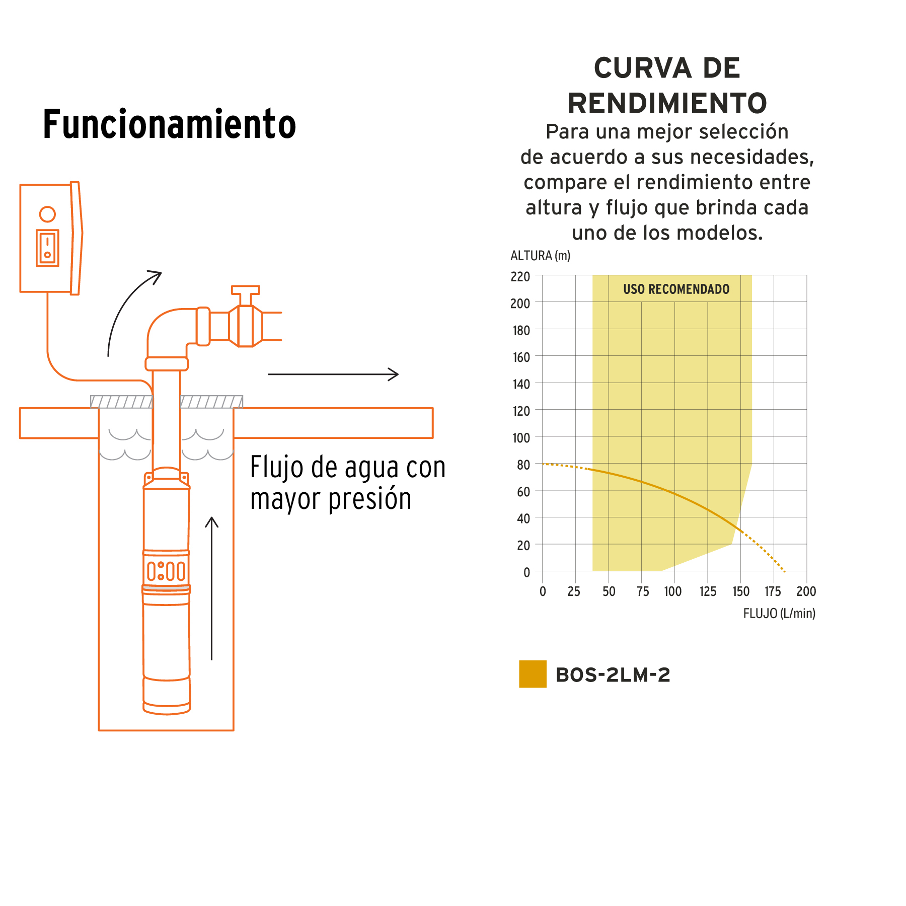 Bomba sumergible tipo bala, 2HP, uso agrícola, 220V, TRUPER