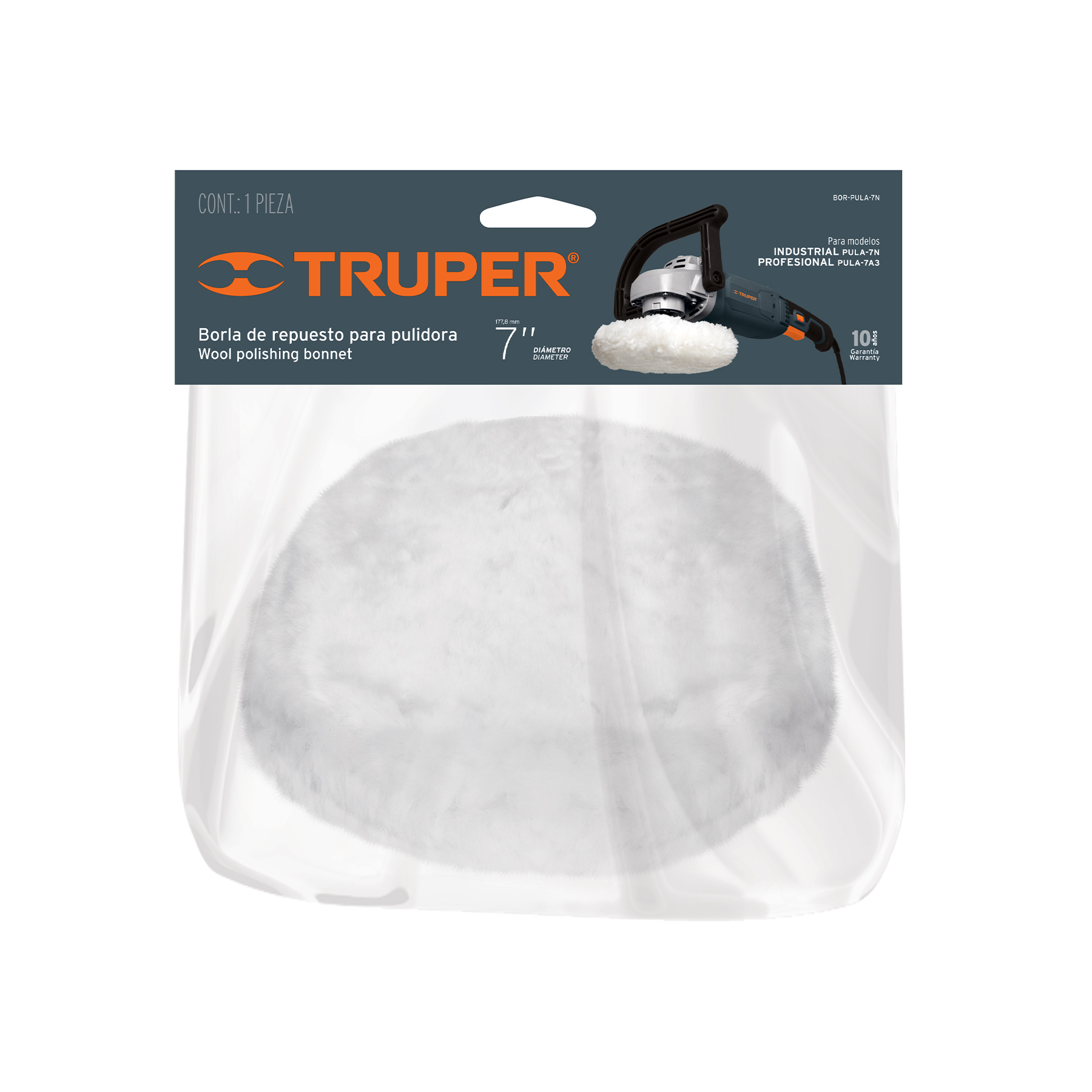 Borla p/pulir de lana de 7′ hook and loop, TRUPER