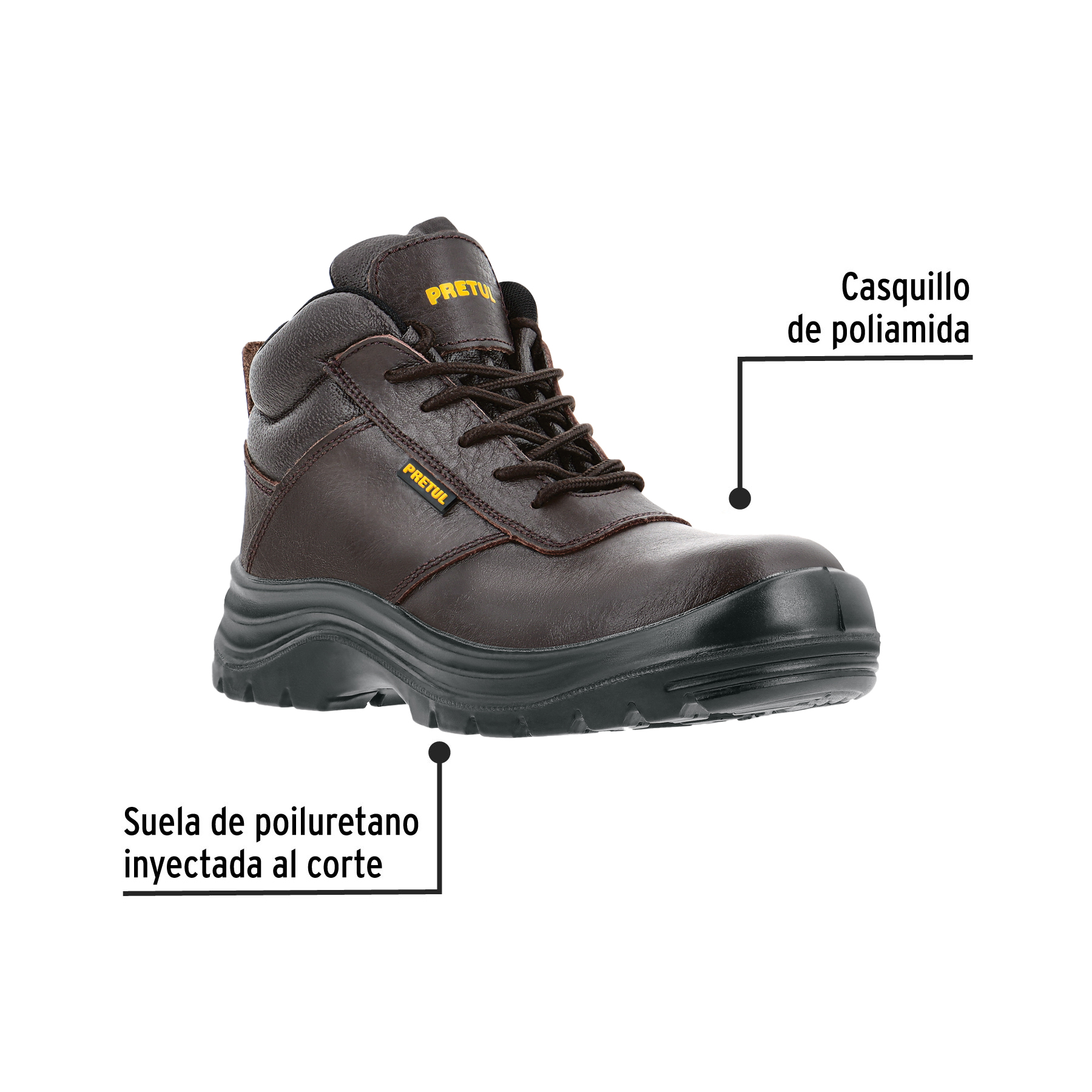 Bota de seguridad café, #25, casquillo de poliamida, PRETUL