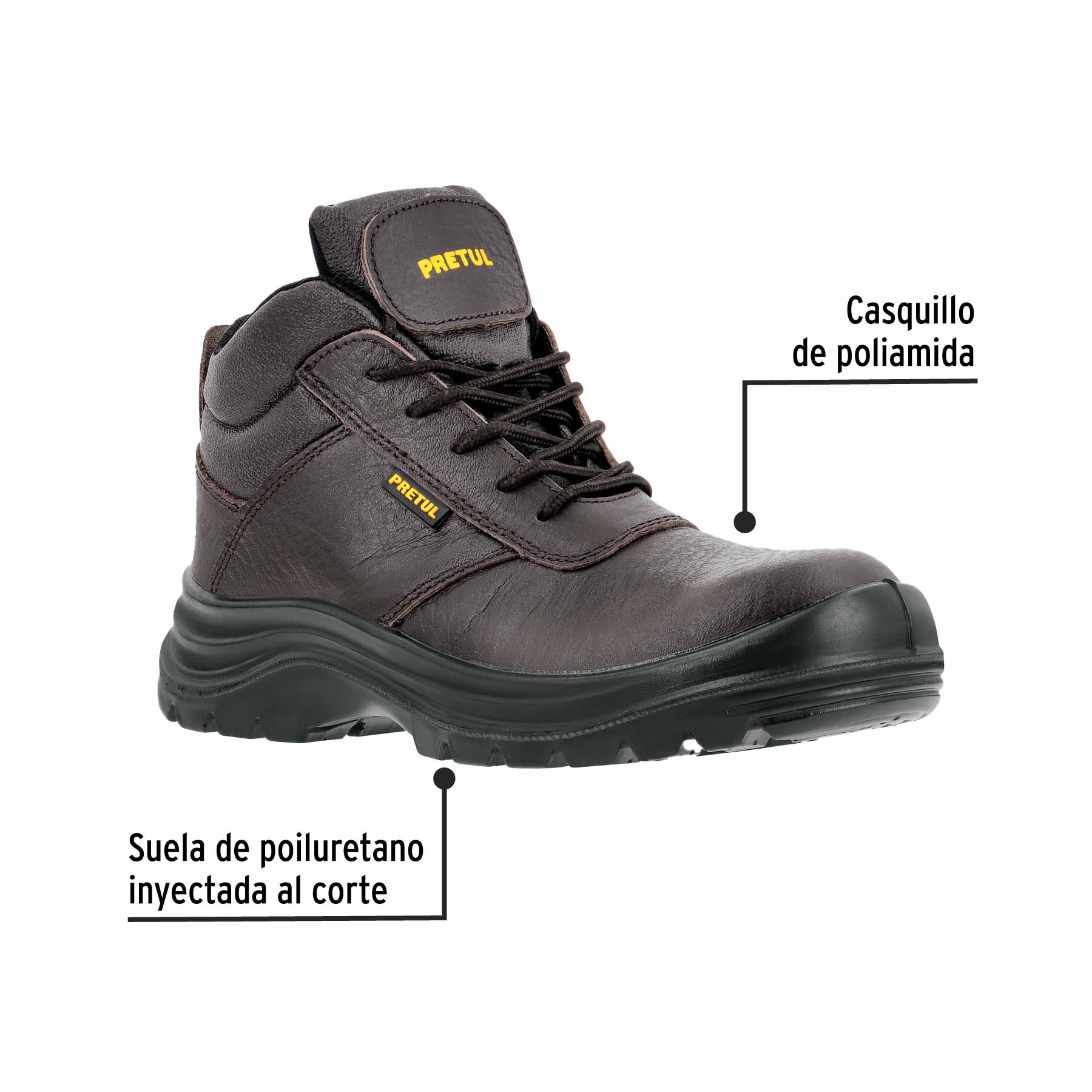 Bota de seguridad café, #26, casquillo de poliamida, PRETUL