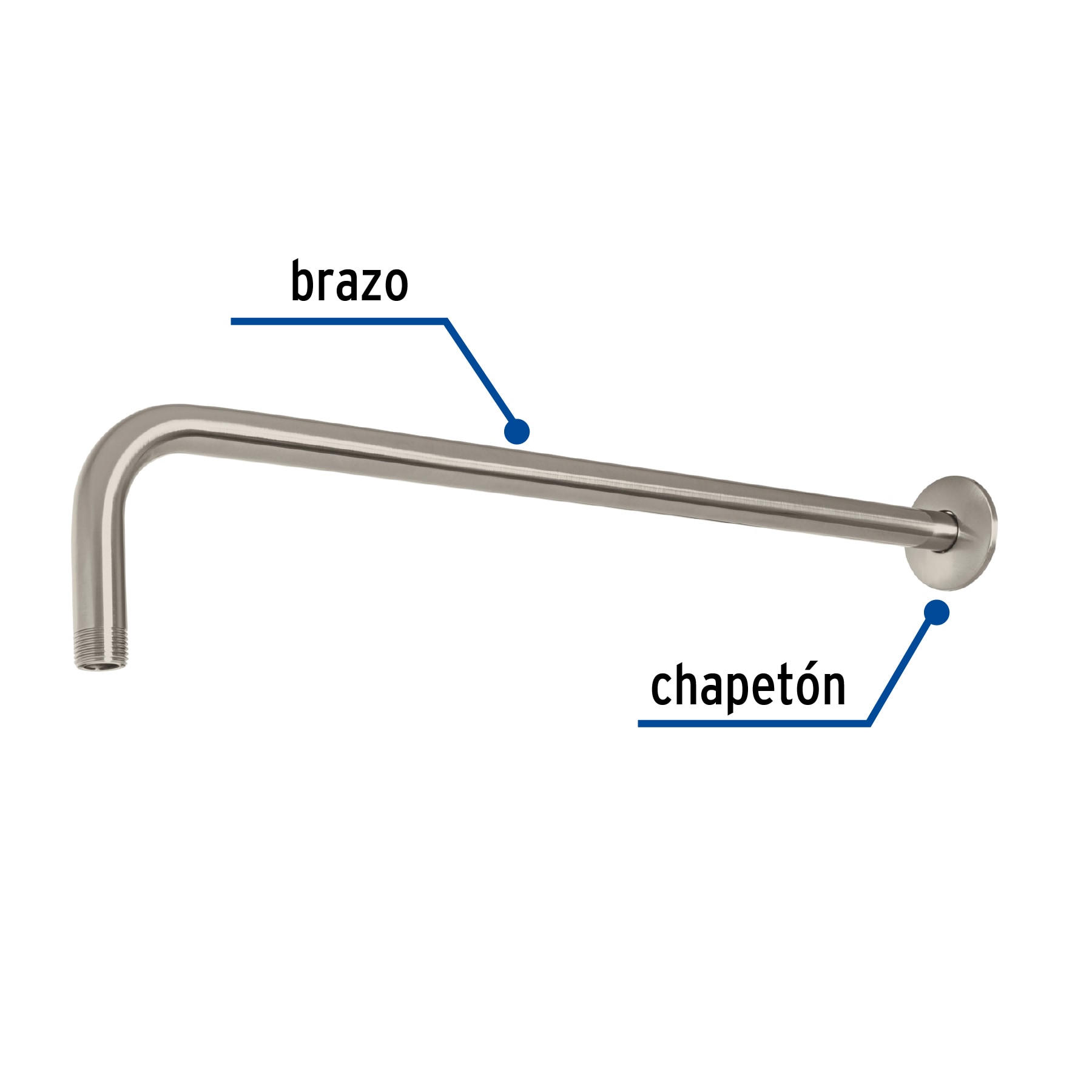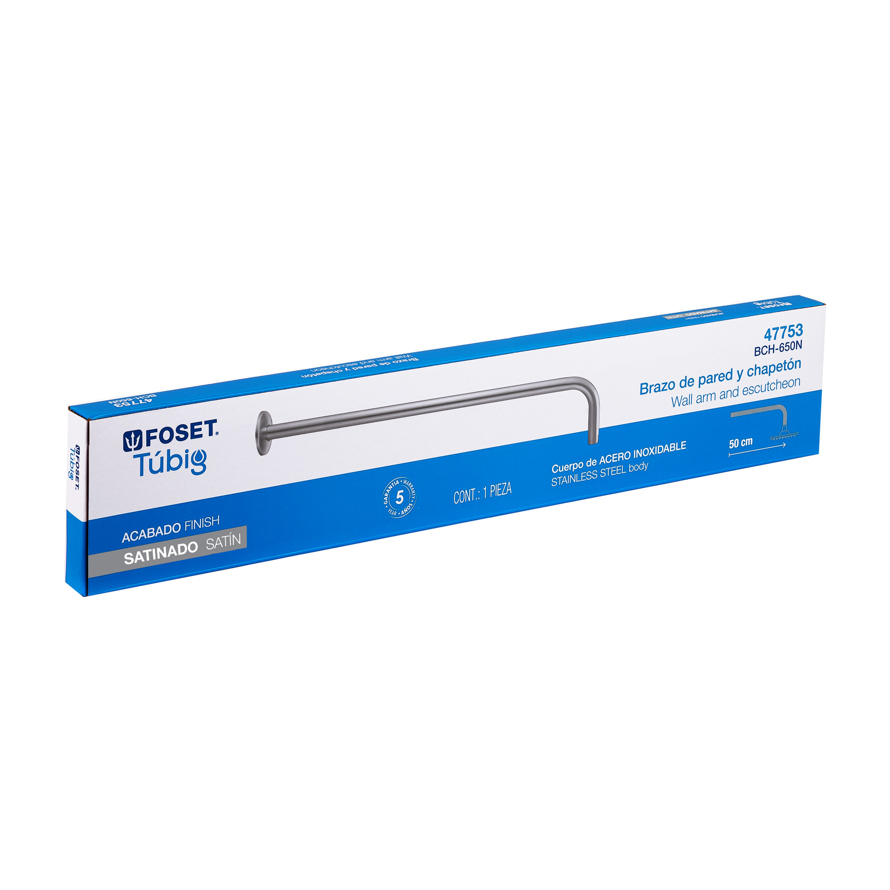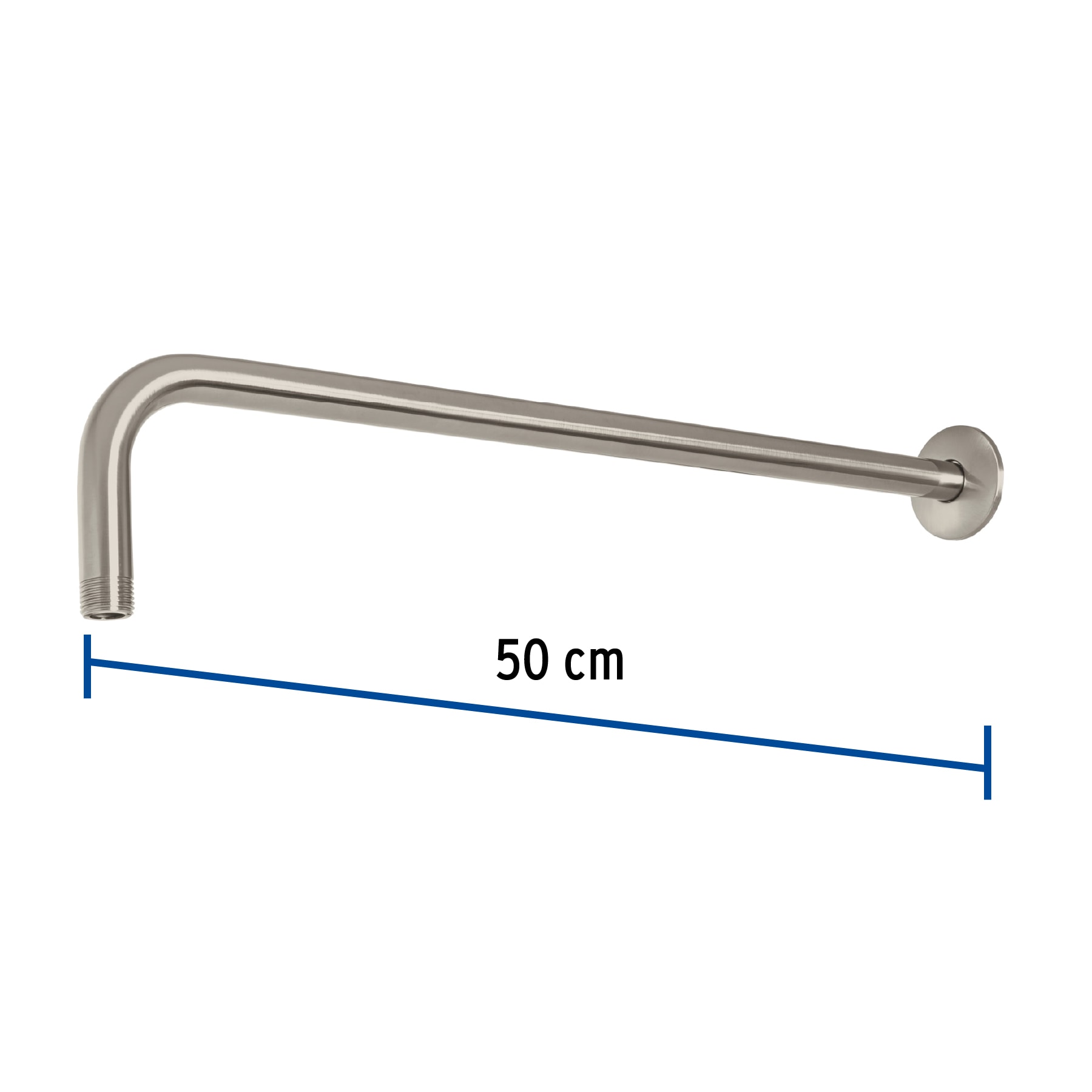 Brazo recto 50 cm con chapetón para regadera, satín, Foset
