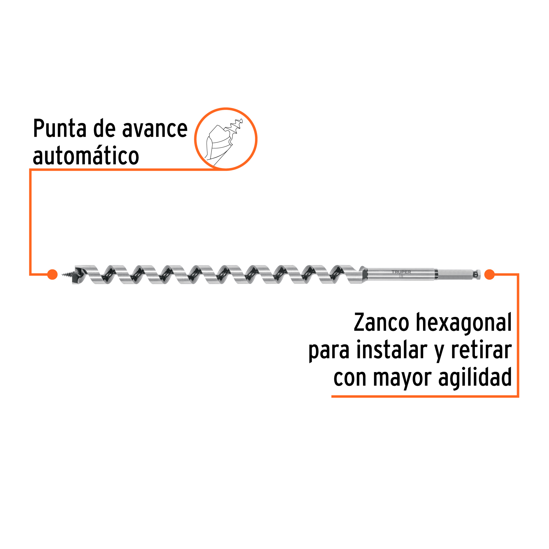 Broca auger tipo berbiquí 7/8′ X 18′, TRUPER
