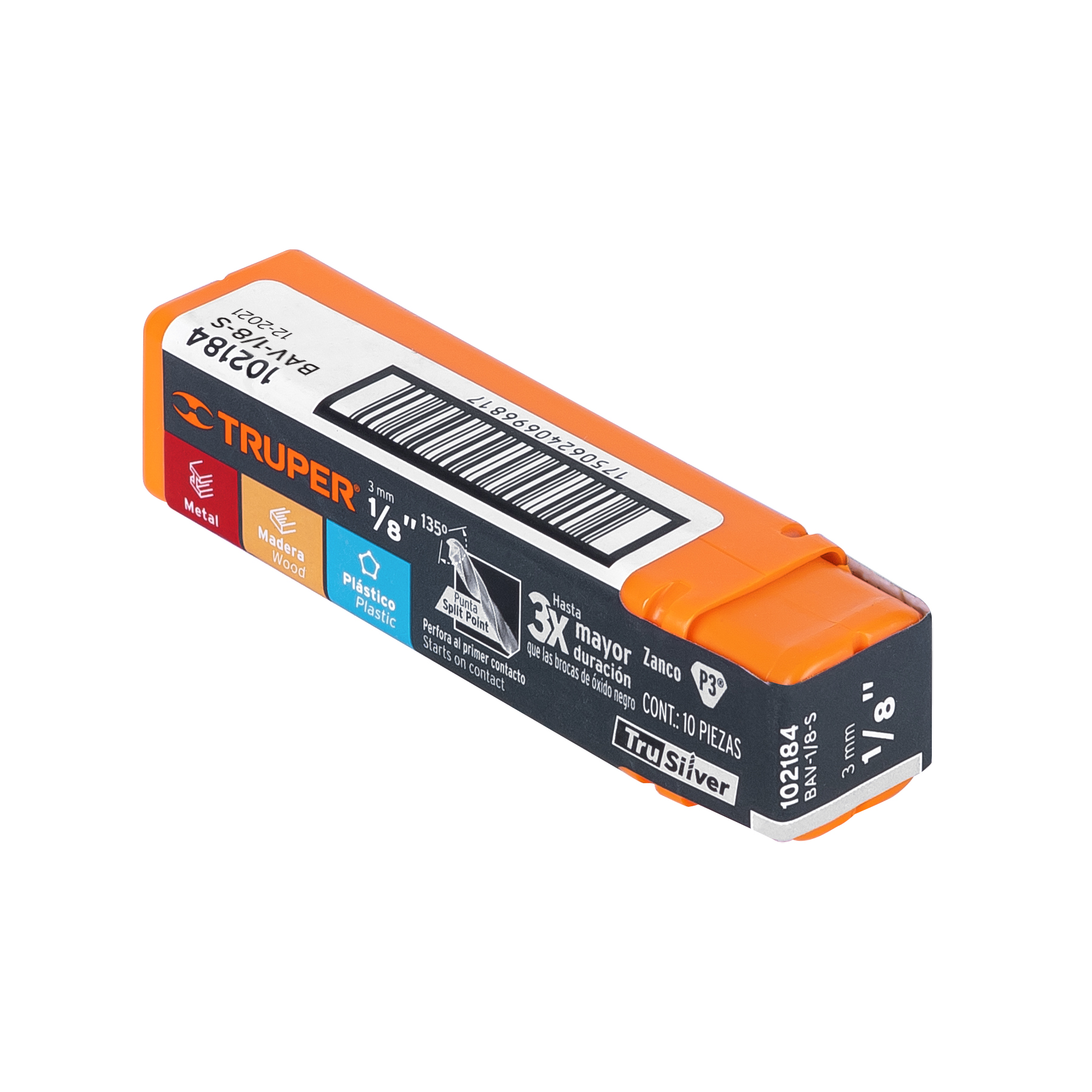 Broca HSS 1/8′ Trusilver para metal, Truper