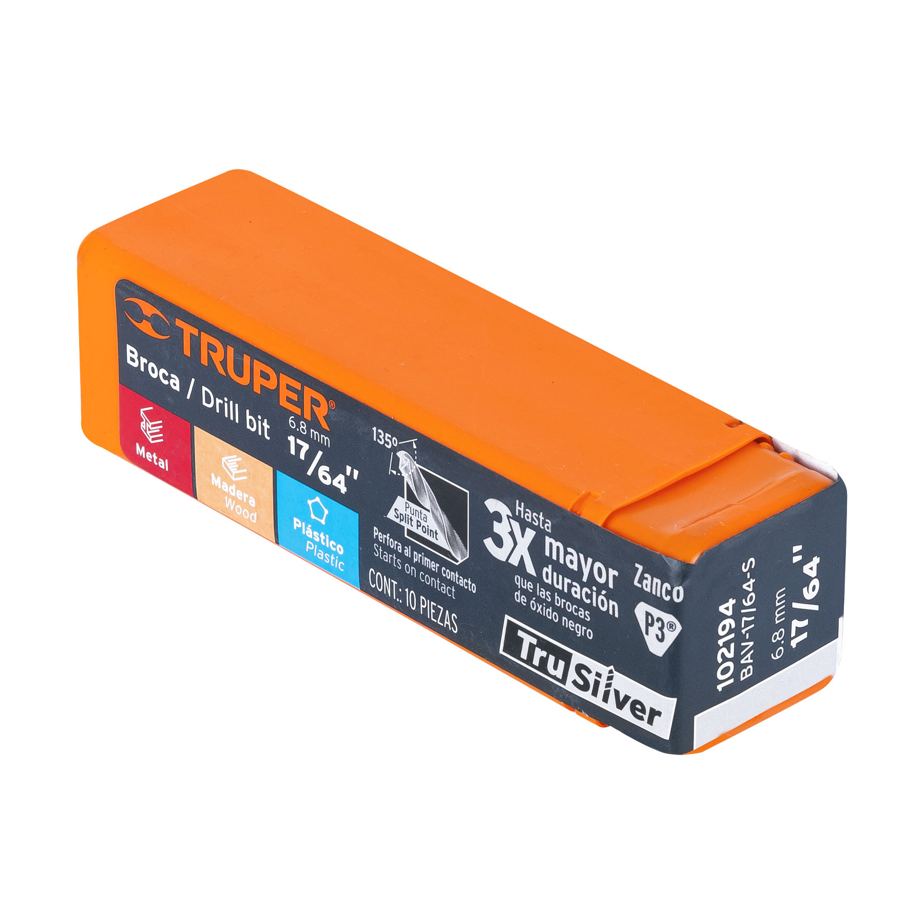 Broca HSS 17/64′ Trusilver para metal, Truper