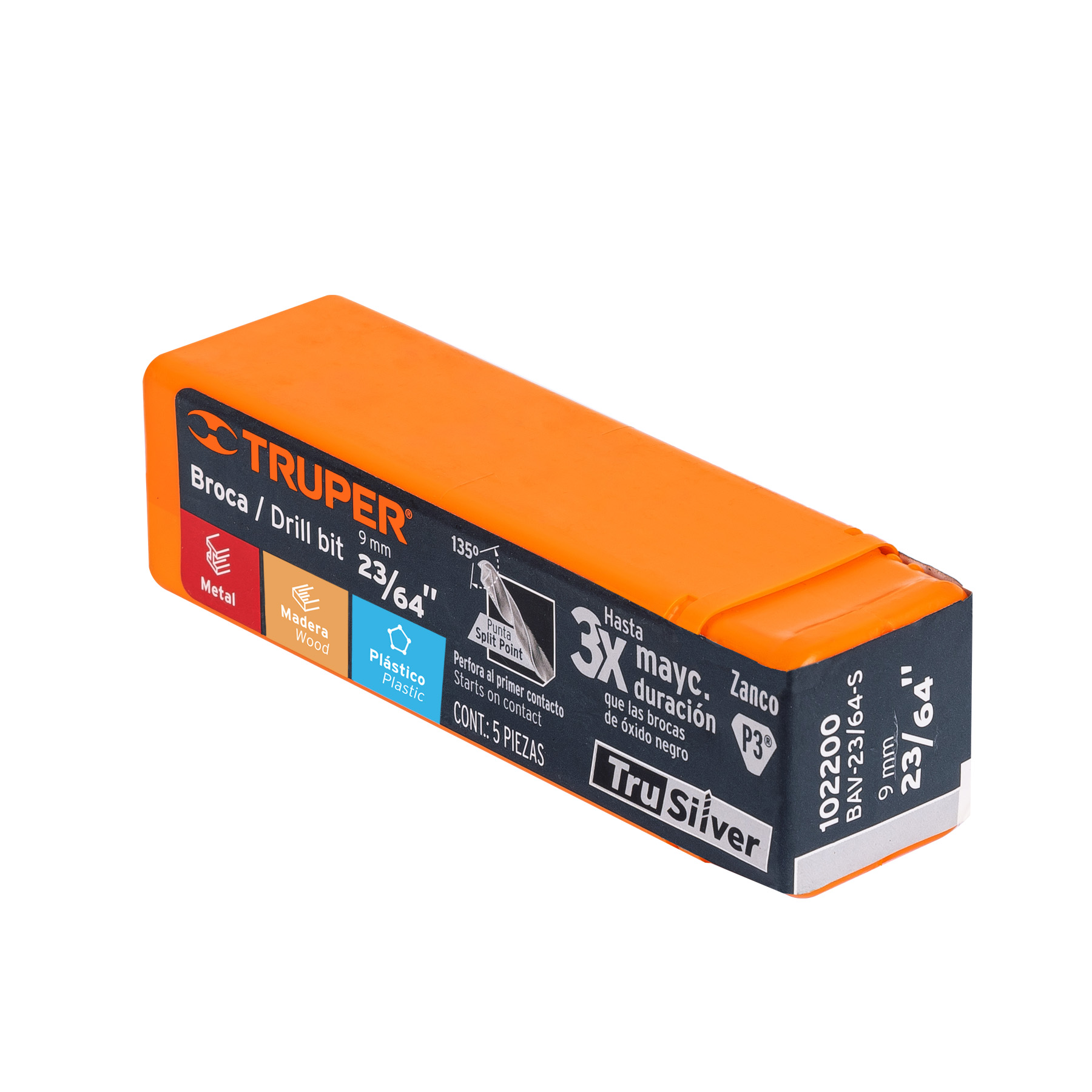 Broca HSS 23/64′ Trusilver para metal, Truper