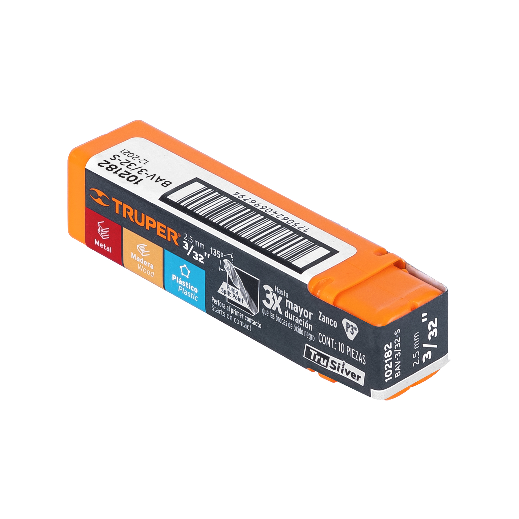 Broca HSS 3/32′ Trusilver para metal, Truper