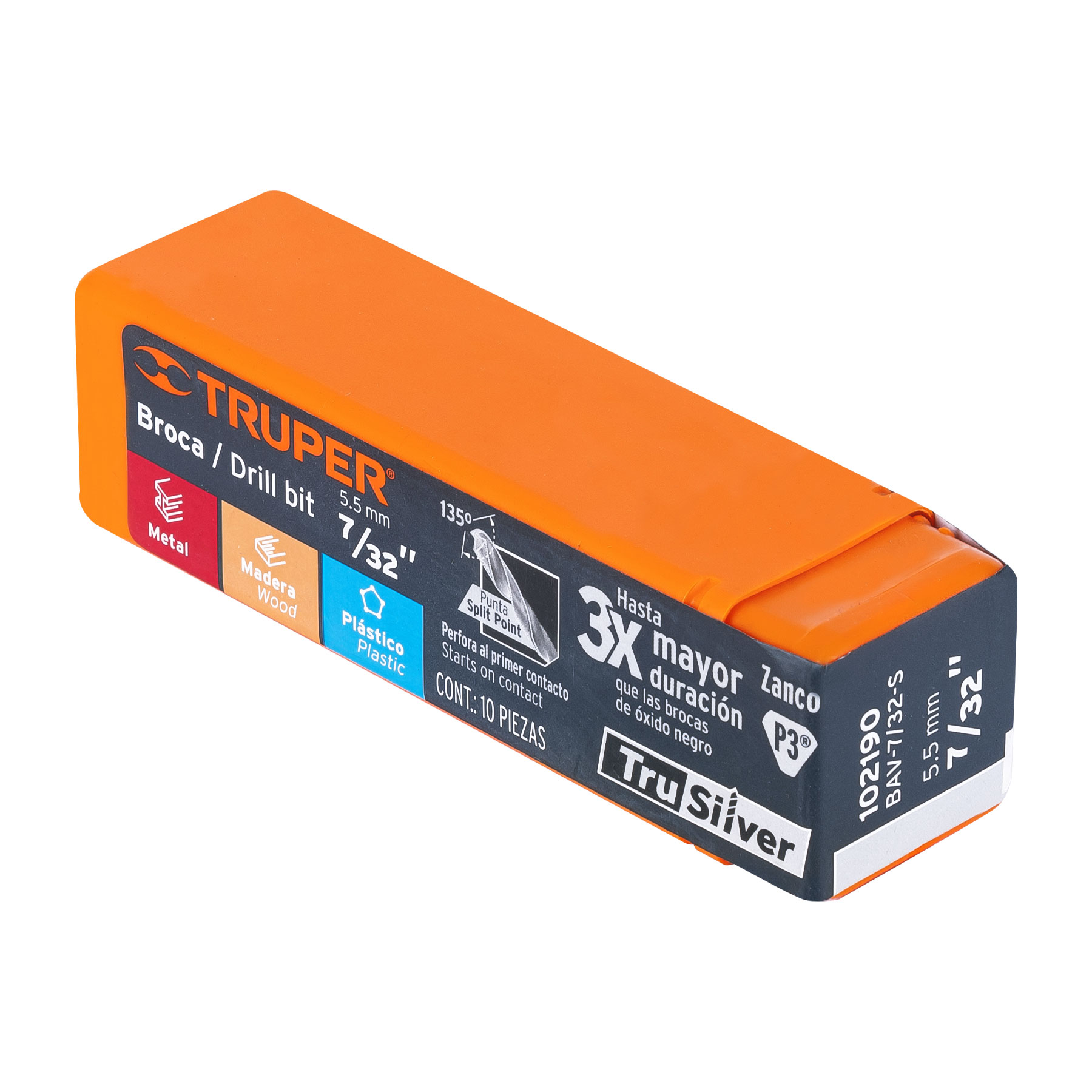 Broca HSS 7/32′ Trusilver para metal, Truper