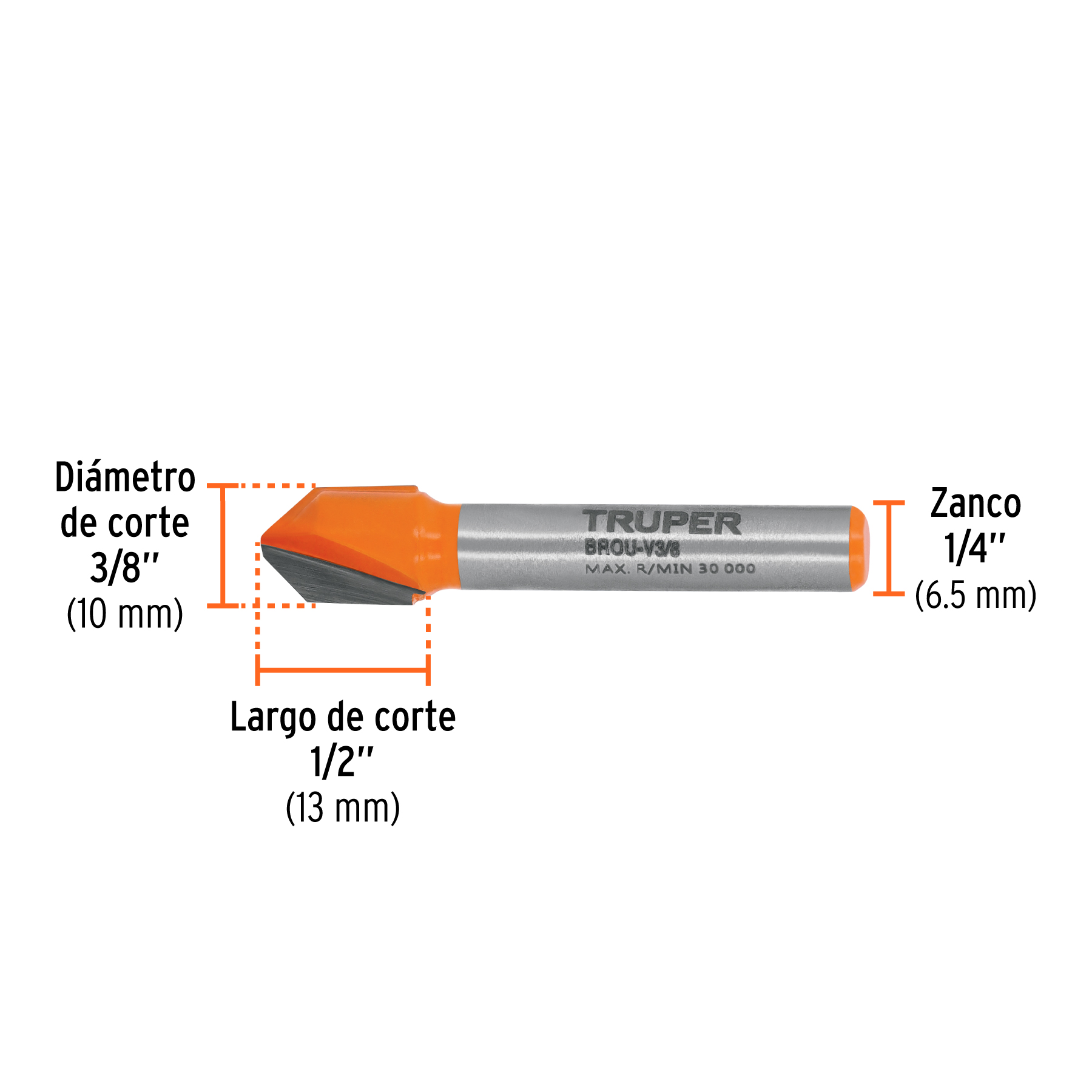 Broca para router, corte en ‘V’, 3/8′, Truper