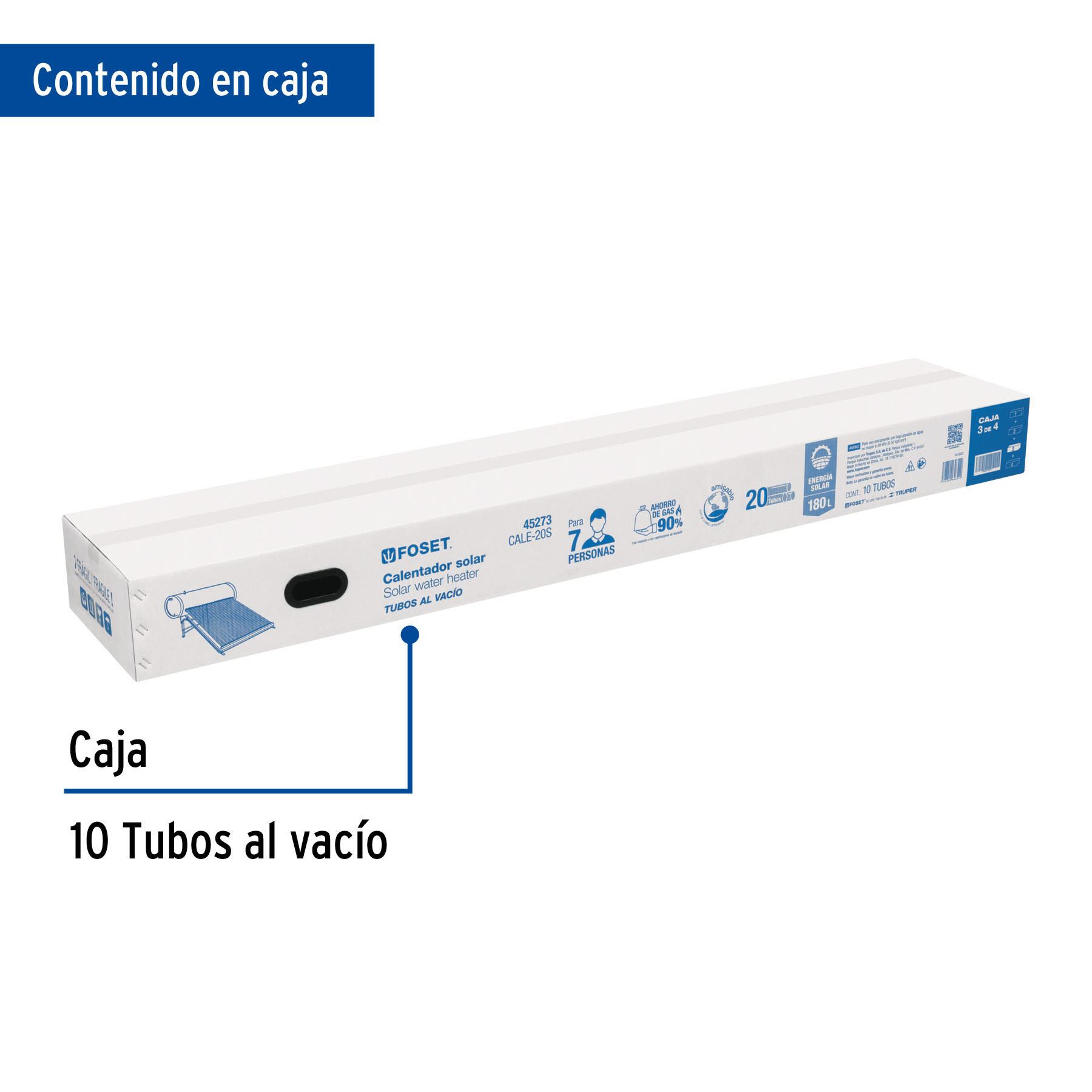 Caja c/10 tubos p/calentador solar CALE-20S, 1 de 2, Foset