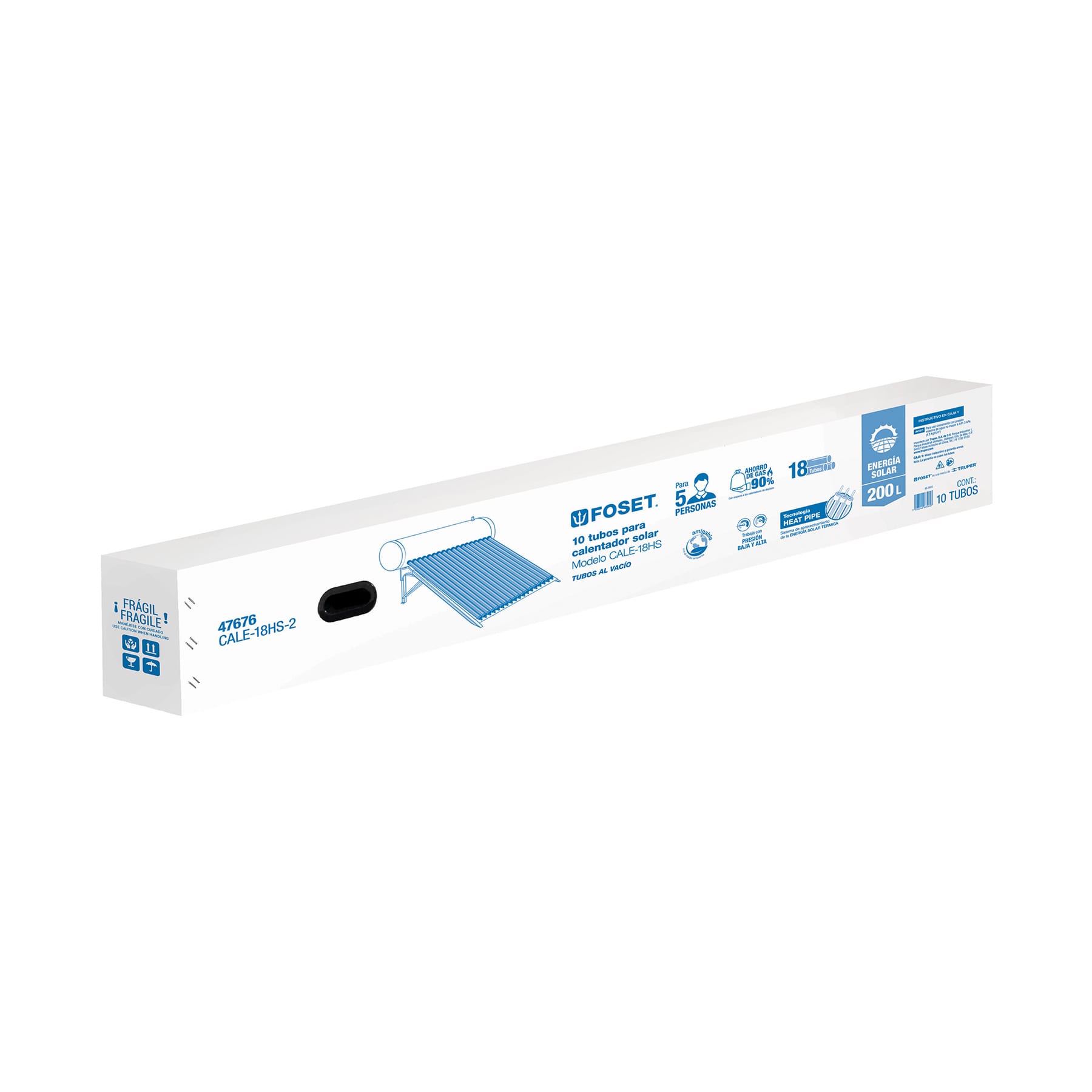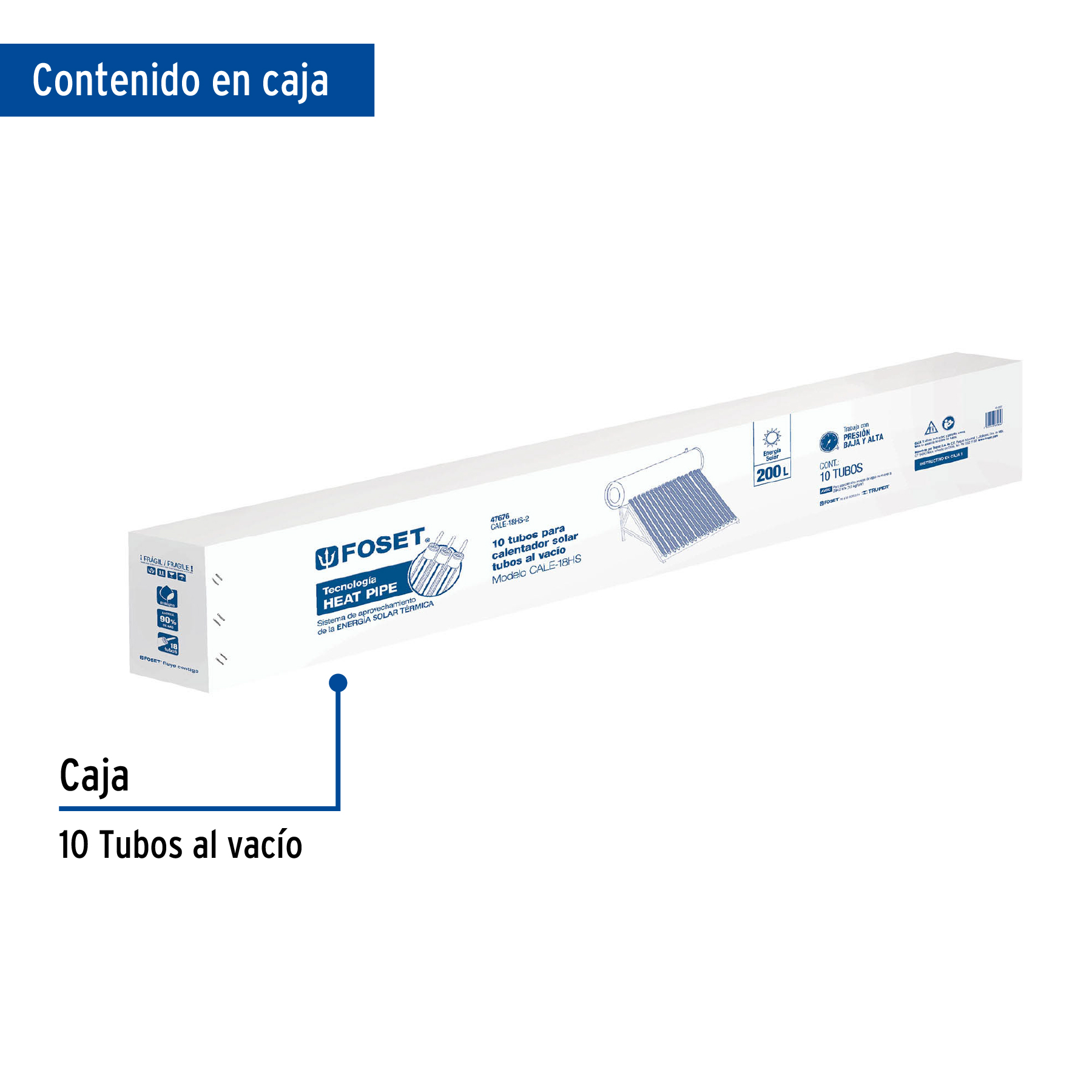Caja c/10 tubos HeatPipe p/calentador solar CALE-18HS, Foset