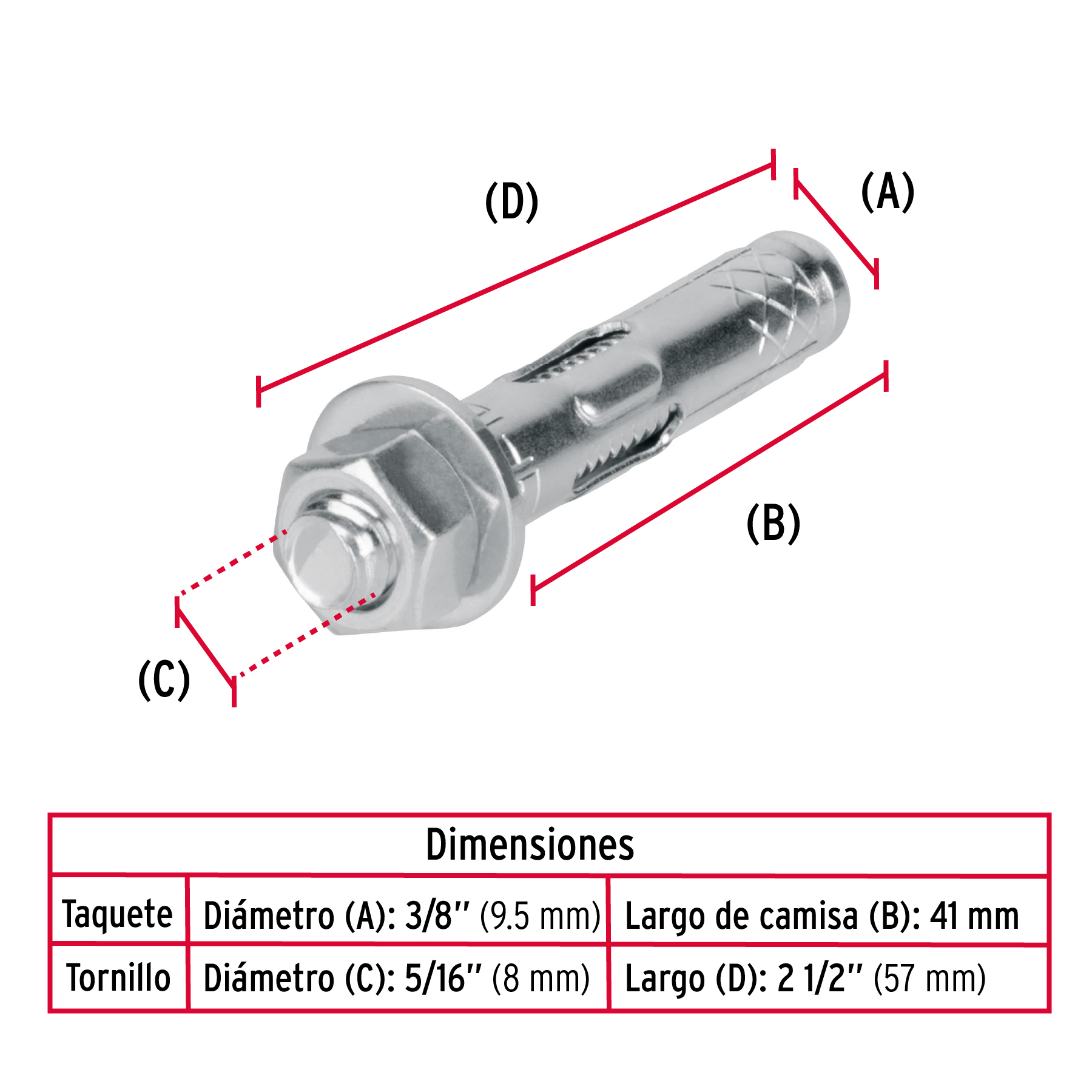 Caja con 100 taquetes expansivos de 5/16′ con tornillo FIERO