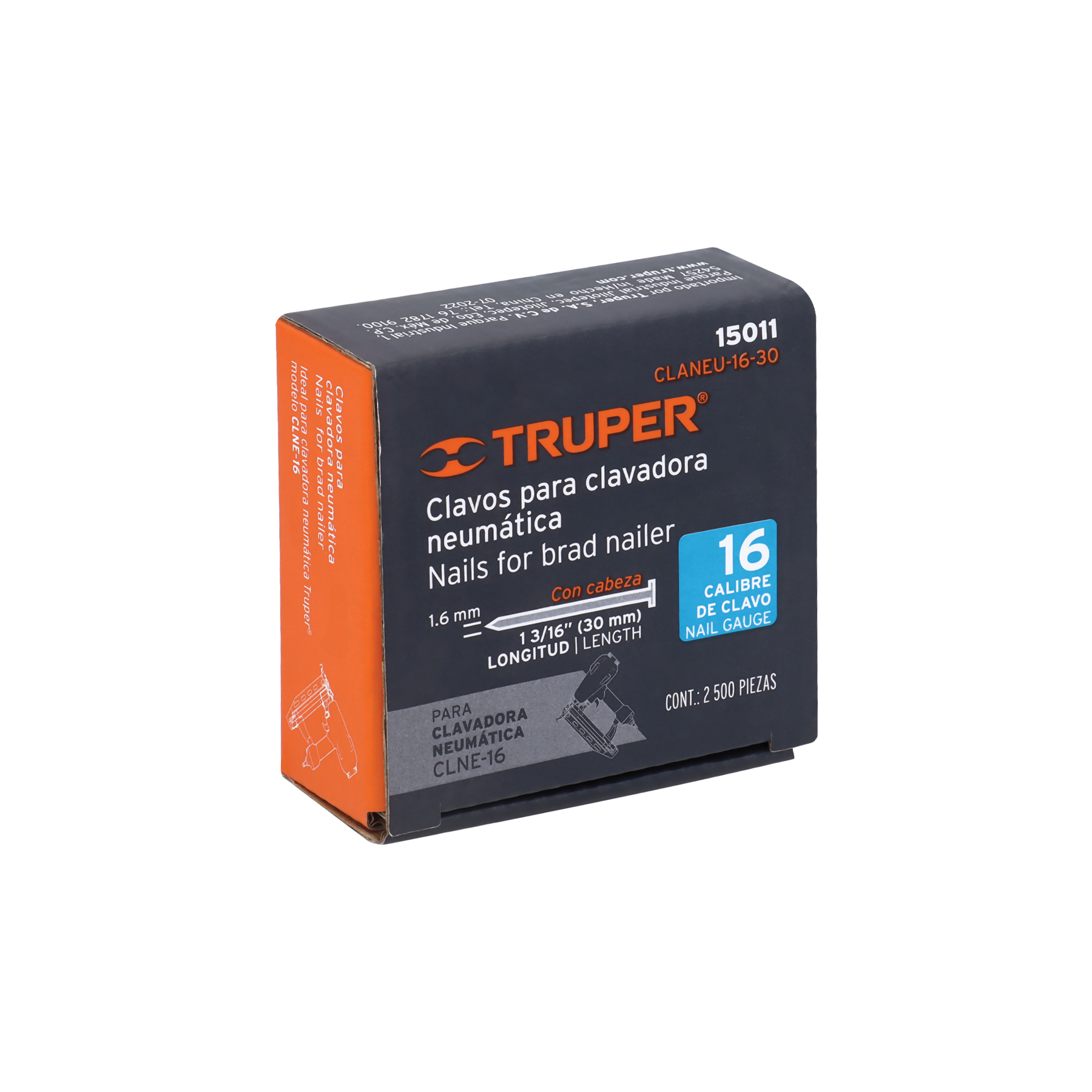 Caja con 2500 clavos calibre 16, 30 mm para CLNE-16, Truper