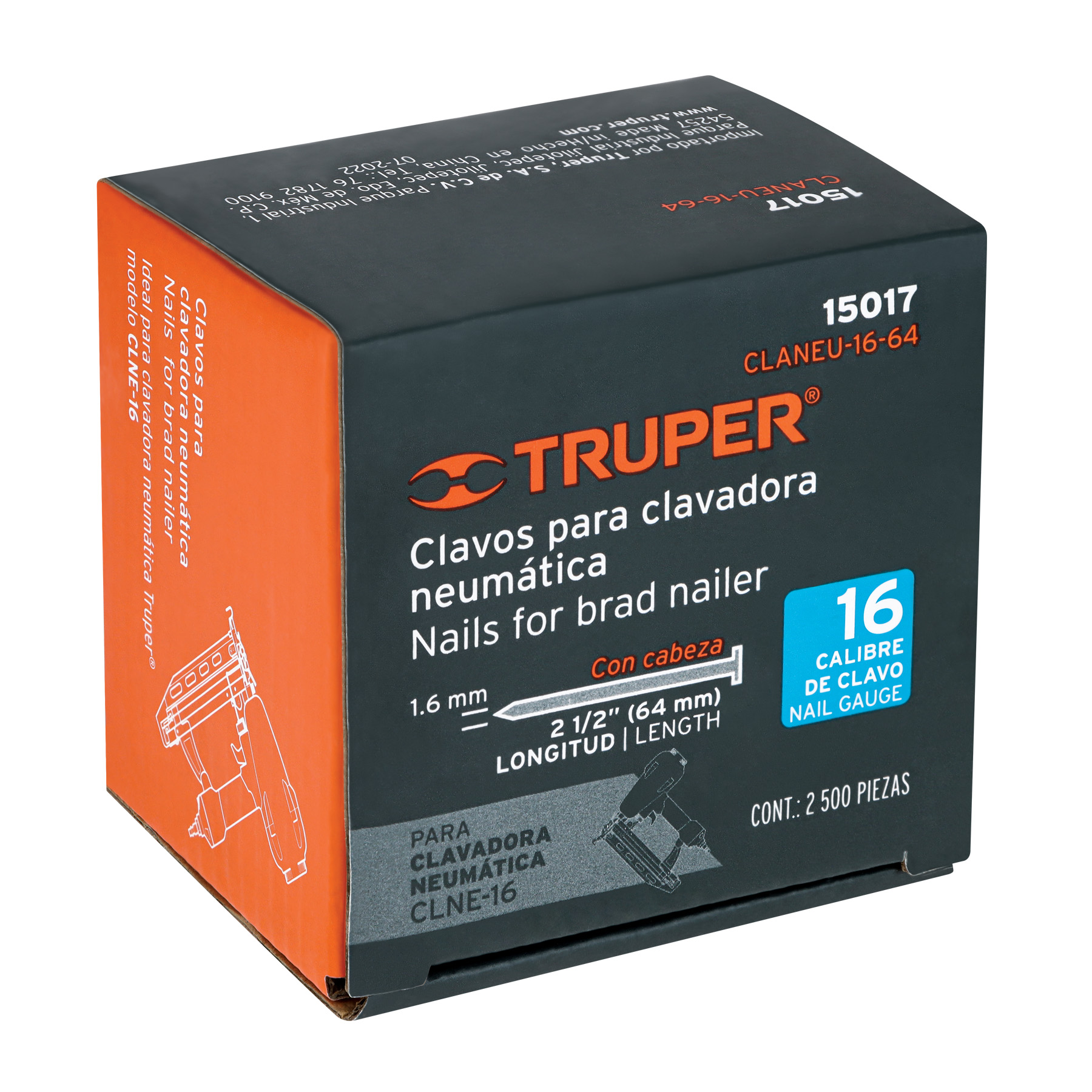 Caja con 2500 clavos calibre 16, 64 mm para CLNE-16, Truper